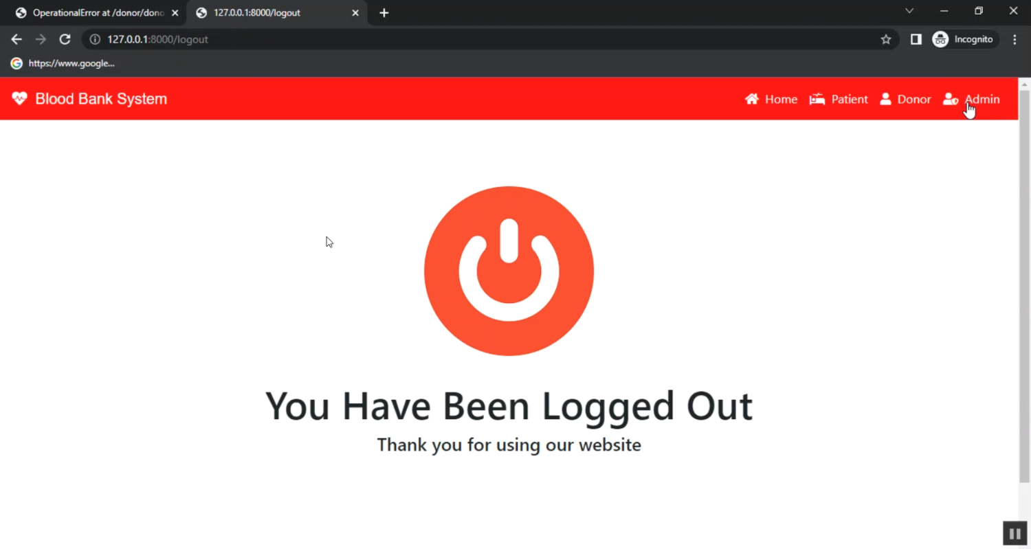 The proposed Django-based Blood Bank Management System offers a centralized, automated solution for blood bank operations. Donors can sign up, manage their donation history, and receive reminders for their next eligible donation. Patients/recipients can search for available blood groups, submit requests, and track status updates online. Administrators and hospitals can monitor inventory in real-time, approve or reject requests, update stock levels after donations, and generate analytical reports. Features such as role-based access control, secure authentication, automated email/SMS notifications, and a dashboard for visualizing blood stock levels ensure reliability and transparency. Compared to manual systems, this solution saves time, reduces errors, ensures timely communication, and makes the process more transparent, ultimately improving healthcare support during emergencies.