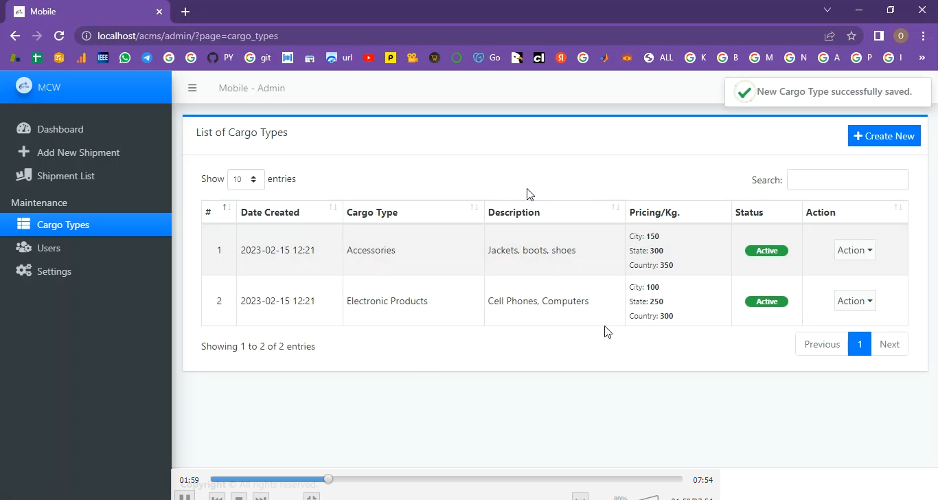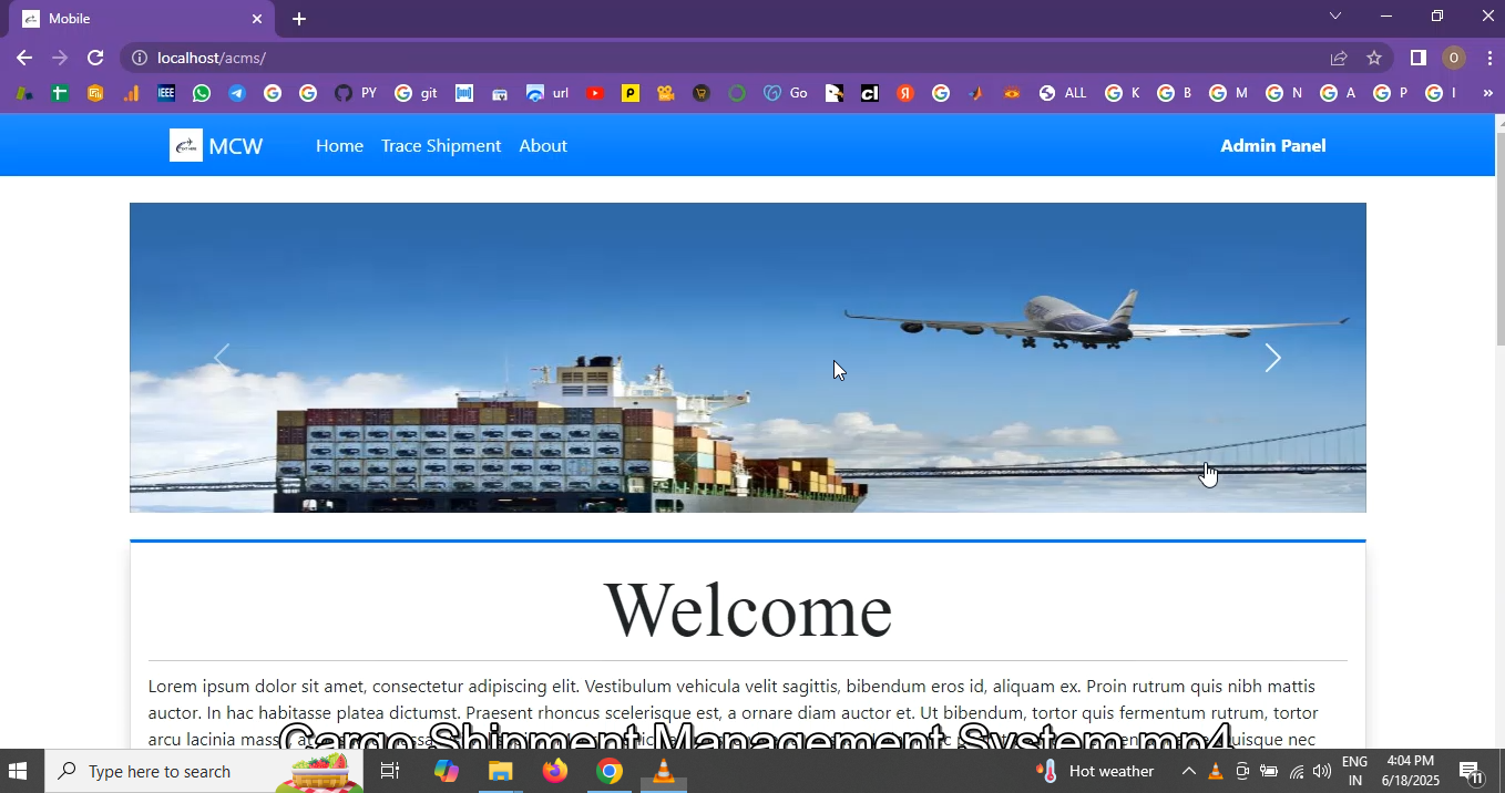 The Cargo Shipment Management System in PHP is designed to digitize and streamline the process of handling cargo shipments for logistics companies, shippers, and customers. This system enables administrators to manage shipment details, track cargo movements, generate invoices, and handle customer requests efficiently. Customers can view shipment status, request pickups, and receive real-time updates on their consignments. Built using PHP and MySQL, it ensures secure data handling, real-time tracking, and a user-friendly interface for both administrators and clients.