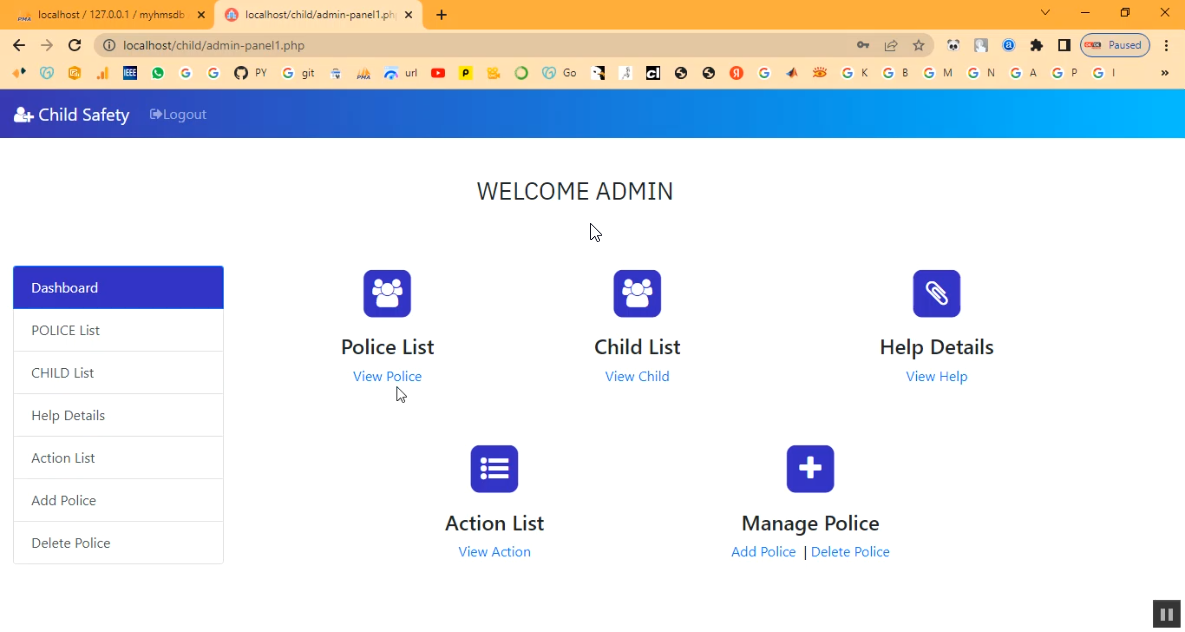 The Child Safety System in PHP is designed to enhance the safety and monitoring of children by providing a centralized platform for parents, guardians, and authorities to manage and track child-related safety information. This system allows administrators to maintain child profiles, track emergency contacts, and report or monitor safety-related incidents. Built using PHP and MySQL, it provides secure data management, real-time notifications, and an intuitive interface to help ensure children’s well-being.