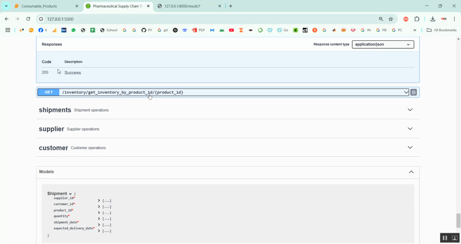 The proposed system introduces a blockchain-based solution using Python for secure and transparent supply chain management of consumable products. Each transaction, such as product creation, shipment, storage, and delivery, is recorded as a block in the blockchain. The block contains a timestamp, product ID, current location, ownership details, and a cryptographic hash to ensure integrity. A peer-to-peer network allows all stakeholders to access a synchronized version of the blockchain, ensuring transparency. Smart contract integration can automate validation processes for shipments and payments. Python libraries such as Flask are used to develop REST APIs, allowing users to interact with the blockchain through a user interface. Hashing is implemented using Python’s hashlib, and consensus is maintained to validate new blocks. The system supports real-time tracking, product verification via QR code scan, and secure audit trails. It minimizes fraud, prevents counterfeit product circulation, and enhances customer trust by ensuring product authenticity across the supply chain.