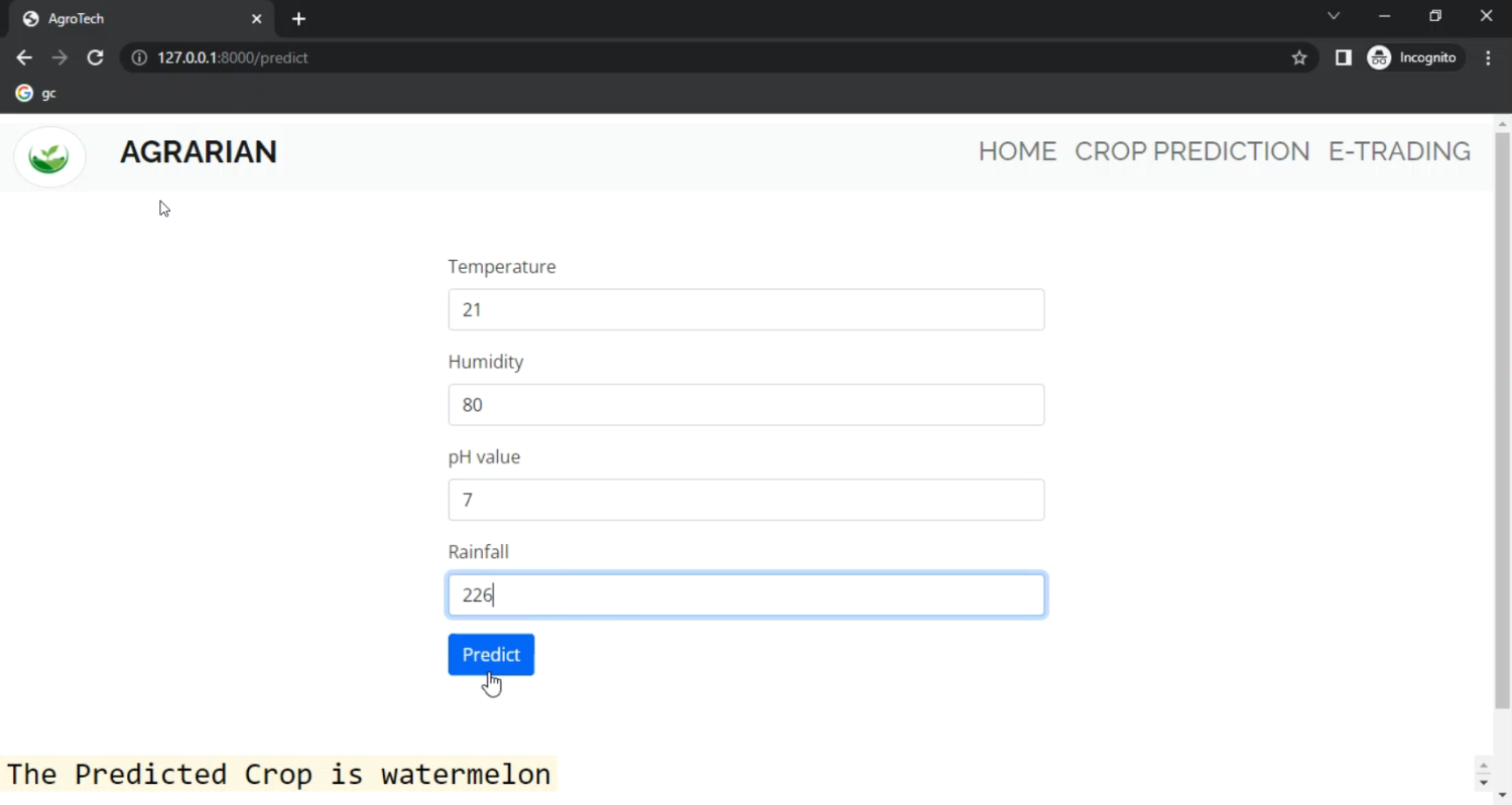 The proposed Django-based Crop Prediction System addresses these limitations by using machine learning models (e.g., Decision Tree, Random Forest, or Naïve Bayes) trained on agricultural datasets. Farmers enter parameters such as soil nutrients (NPK values), pH, temperature, and rainfall, and the system predicts the most suitable crop for that region. The portal provides a farmer-friendly interface where users can view crop suggestions, fertilizer recommendations, and expected yield estimates. Administrators can update datasets and models to improve accuracy over time. Compared to the existing manual system, this approach ensures personalized, accurate, and timely crop recommendations, helping farmers achieve better productivity and profitability.
