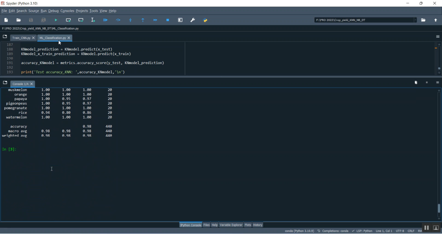 Crop yield prediction is one of the most critical challenges in agriculture, as it directly impacts food security, resource planning, and farmer income. This project, Crop Yield Prediction Using KNN, Naïve Bayes, and Decision Tree with Streamlit in Python, develops a machine learning–based solution that predicts crop yield using soil data, rainfall, temperature, and other environmental features. Three algorithms—K-Nearest Neighbors (KNN), Naïve Bayes (NB), and Decision Tree (DT)—are trained and evaluated for accuracy in predicting crop productivity. The application is deployed using Streamlit, providing farmers and researchers with an interactive web interface for inputting data, visualizing results, and comparing model performance. This system assists in better crop planning, agricultural policy-making, and sustainable farming.