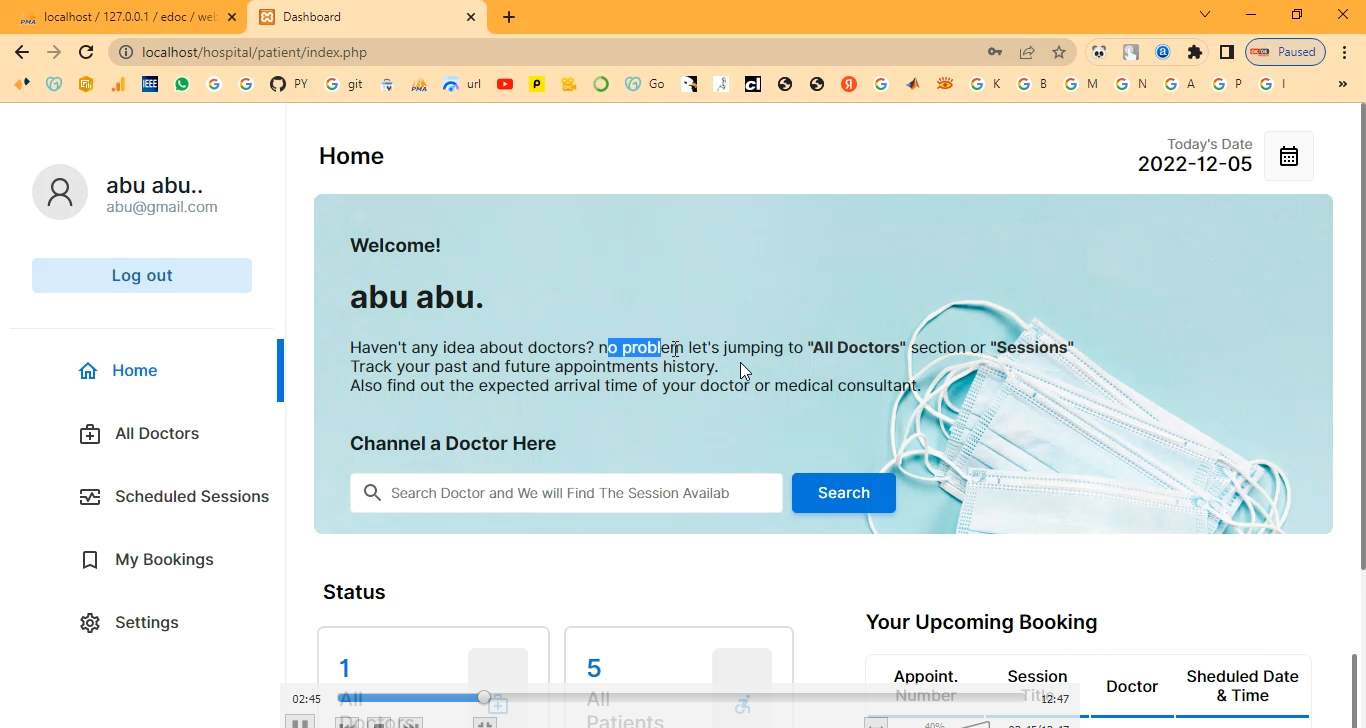 The E-Doctor Patient Management System is a PHP-based web application designed to facilitate seamless interaction between doctors and patients in a digital environment. It allows patients to register, book online appointments, view their medical history, and receive prescriptions, while doctors can manage schedules, patient records, and consultations through a centralized system. Built with PHP and MySQL, this platform ensures secure handling of sensitive medical data and provides a user-friendly interface for both patients and healthcare providers.