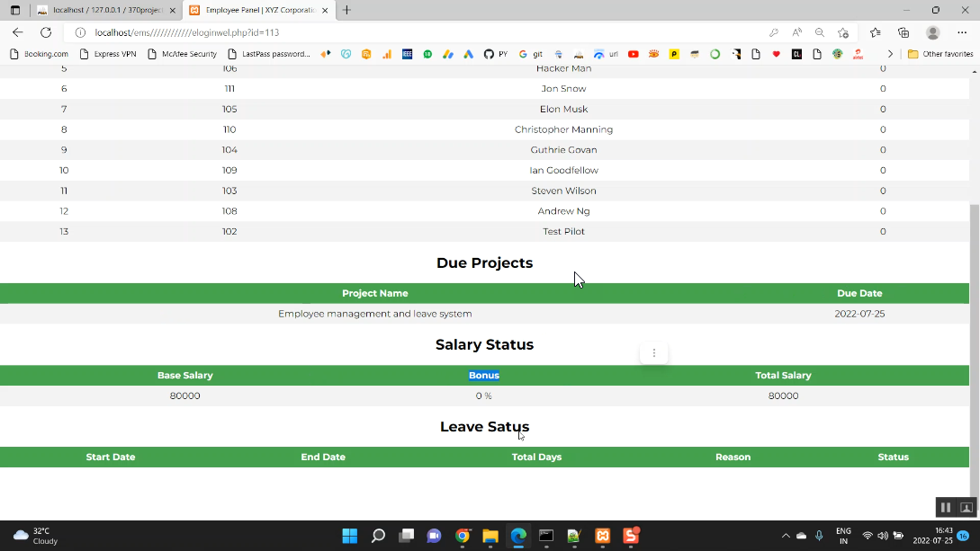 The proposed Employee Management System in PHP centralizes employee information in a secure web application. Administrators/HR staff can add, update, or remove employee records, assign roles, track attendance, manage leave requests, calculate payroll, and store performance evaluations. Employees can log in to view their personal details, attendance history, leave balance, and payslips. Using PHP for server-side logic and MySQL for database storage, the system ensures data security, easy scalability, and real-time access. Additionally, it can generate comprehensive reports such as monthly attendance, payroll summaries, and employee performance metrics, helping HR make informed decisions.