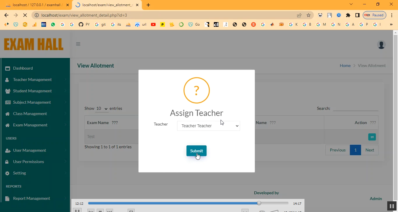 The Exam Hall Room Schedule System is a PHP-based web application developed to automate the allocation of exam halls and the scheduling of exams in educational institutions. It allows administrators to create exam timetables, assign rooms based on capacity, allocate invigilators, and generate seating plans. By digitalizing the process, the system minimizes manual errors, saves time, and ensures smooth conduct of examinations.