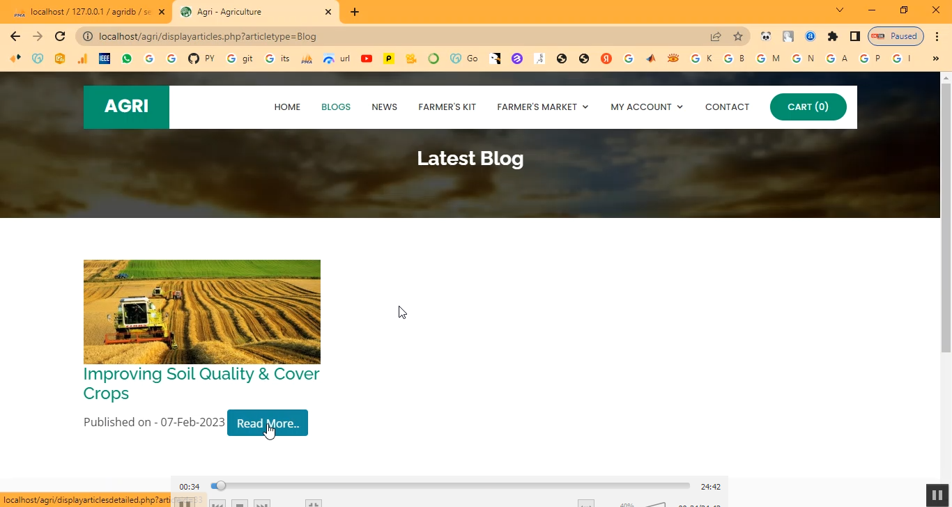 The Farmer Kit Market System is a PHP-based web application designed to provide farmers with an online platform to purchase agricultural tools, seeds, fertilizers, and other farm-related products. The system streamlines the process of browsing products, placing orders, and managing deliveries. By digitizing the farm kit market, the system helps farmers save time, ensures product availability, and provides secure transaction management. Additionally, it allows administrators to manage product listings, monitor sales, and generate reports to improve inventory and customer satisfaction.