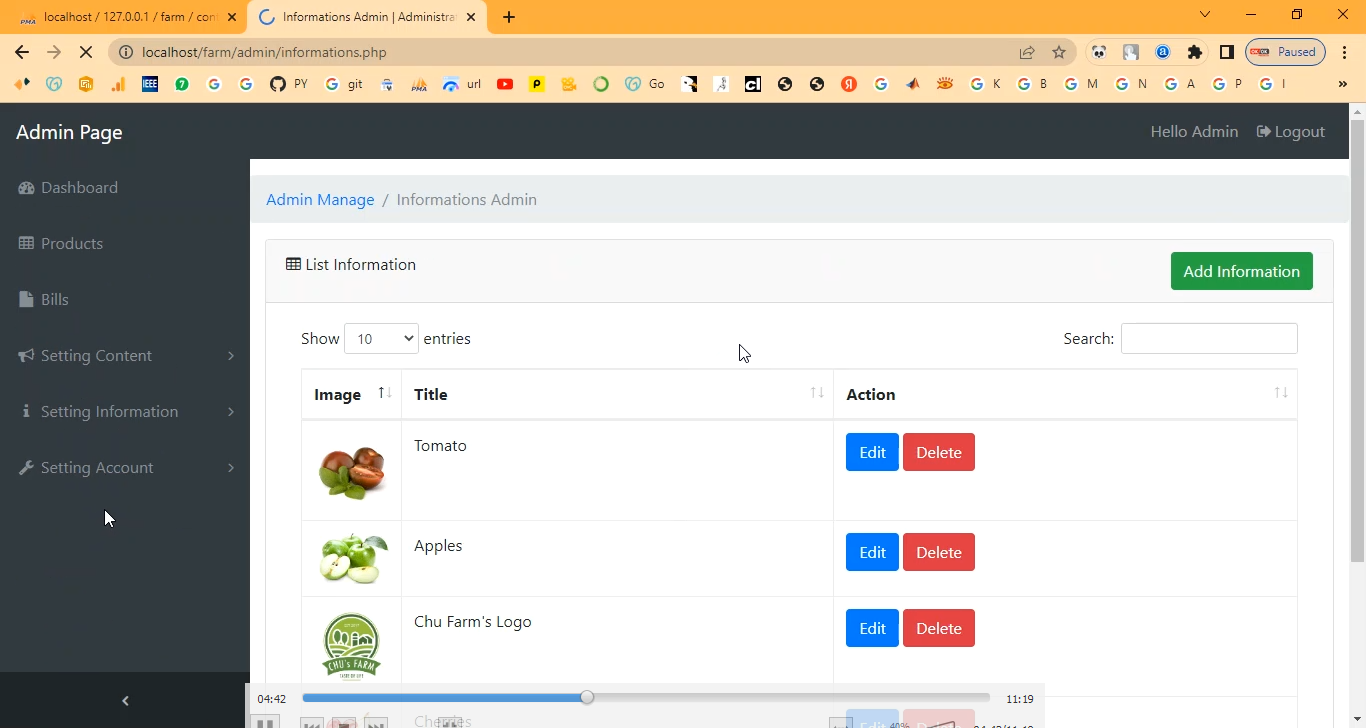 The Farming Management System is a PHP-based web application designed to assist farmers in efficiently managing their agricultural activities. The system provides a centralized platform for tracking crop cultivation, inventory, sales, and farm operations. By digitizing the management process, it helps farmers optimize resource usage, monitor farm productivity, and make informed decisions. Administrators and farm owners can access reports on crop status, sales, and financial data, enabling better planning and overall farm efficiency. The system also reduces manual record-keeping and provides a user-friendly interface for easy operation.