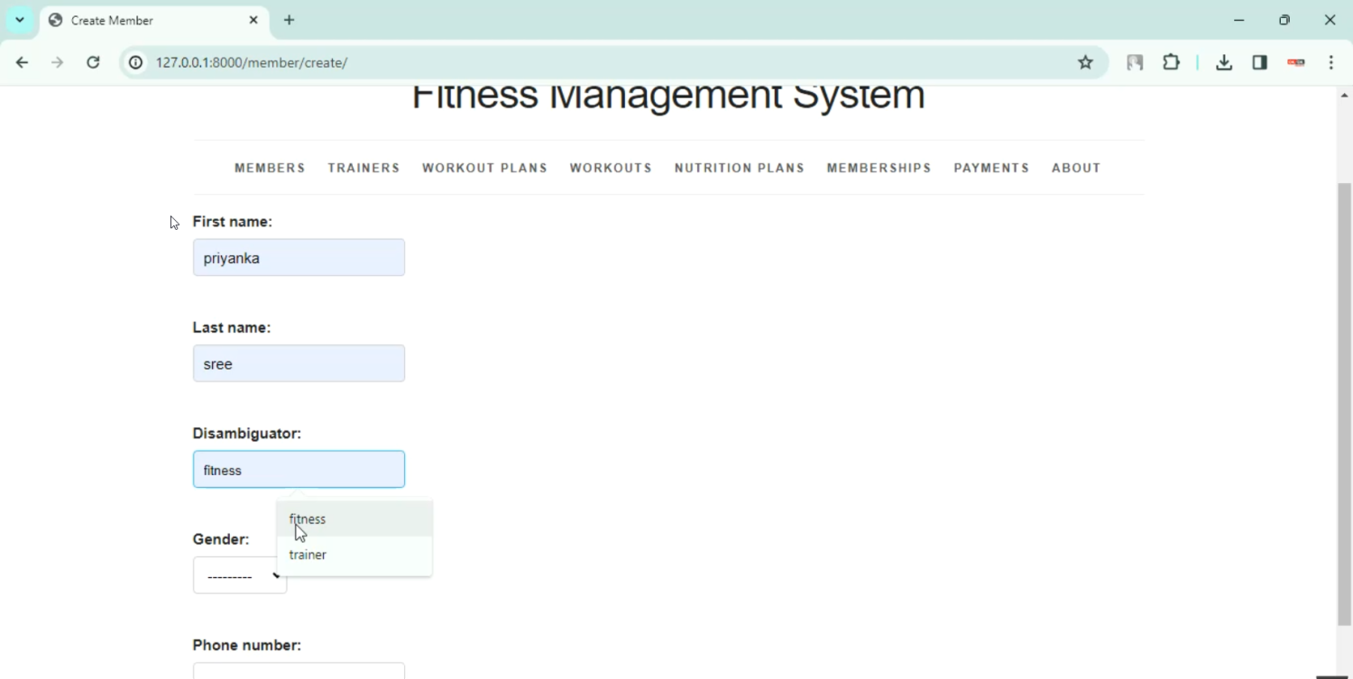 Health and fitness have become essential aspects of daily life, requiring digital platforms to track progress, manage workouts, and provide personalized guidance. This project focuses on developing a Fitness Management System in Django Python, designed to help gyms, trainers, and individuals manage fitness plans, track activities, and monitor health metrics. The system enables users to create workout schedules, log daily activities, record diet plans, and view progress reports. By leveraging Django’s secure and scalable framework, the system enhances user engagement, improves training effectiveness, and promotes a healthy lifestyle.