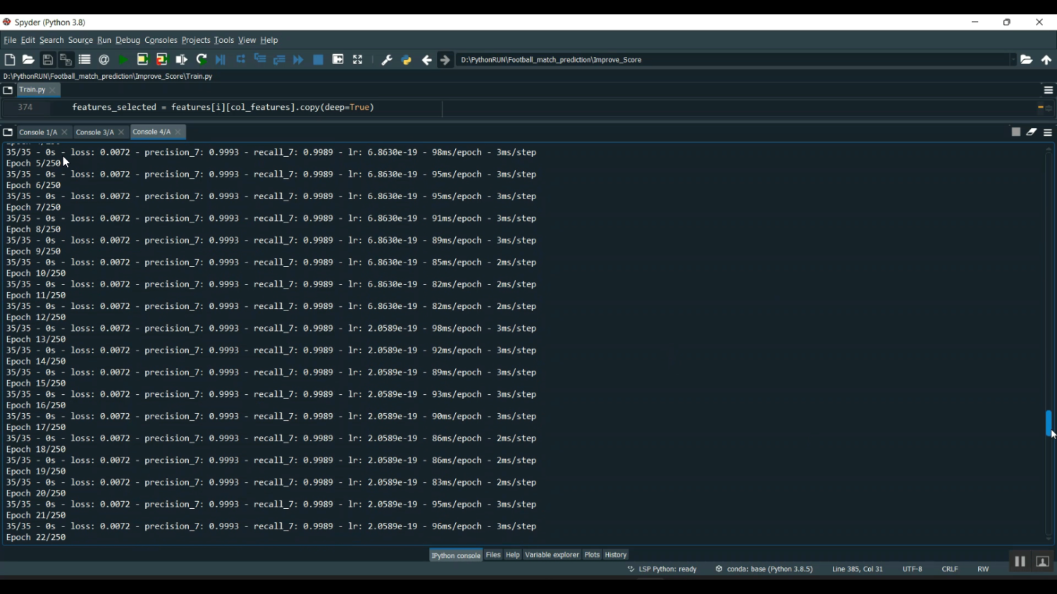 Predicting the outcome of football matches has become a popular area of research in sports analytics, combining data science, machine learning, and statistical modeling. This project focuses on developing a Python-based Football Match Prediction system that improves accuracy through advanced feature analysis, model optimization, and hybrid learning techniques. The system utilizes historical match data, player statistics, team performance, and environmental factors to forecast match outcomes such as win, draw, or loss. Implemented using Python libraries like Pandas, NumPy, Scikit-learn, and TensorFlow/Keras, the project applies data preprocessing, feature selection, and ensemble learning to enhance predictive accuracy. The proposed model aims to assist analysts, enthusiasts, and researchers in making precise football predictions by integrating data-driven insights with optimized machine learning techniques.