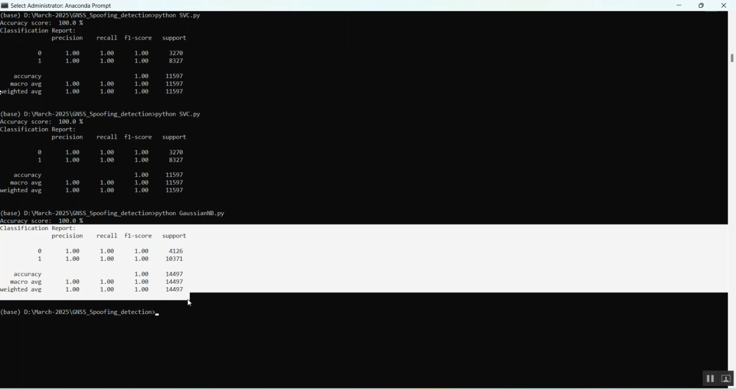 The proposed system introduces a Python-based hybrid detection architecture that fuses signal-level analysis, multi-sensor consistency checks, and machine learning anomaly detection to identify GNSS spoofing robustly. Signal-processing modules compute features such as satellite Doppler residuals, SNR distributions, carrier-to-noise ratios across satellites, pseudorange residuals, and time-difference-of-arrival inconsistencies; these are complemented by spatial-temporal consistency checks against IMU/INS, wheel odometry, Wi‑Fi/BLE/geolocation fixes, and known map constraints. Supervised and unsupervised ML models (e.g., Isolation Forest, autoencoders, and lightweight classifiers) learn normal feature patterns and flag deviations indicative of spoofing or meaconing. The system supports multi-antenna directional checks and correlation-based RF fingerprinting when SDR access is available, and provides a weighted risk score, visual diagnostics, and mitigation hooks (e.g., switch to odometry, hold-last-known-fix, raise operator alert). Implemented with an eye toward deployability, the framework includes streaming data ingestion, online feature extraction, configurable thresholds, and periodic retraining to adapt to environmental change, enabling resilient GNSS integrity monitoring across automotive, UAV, marine, and critical infrastructure applications.