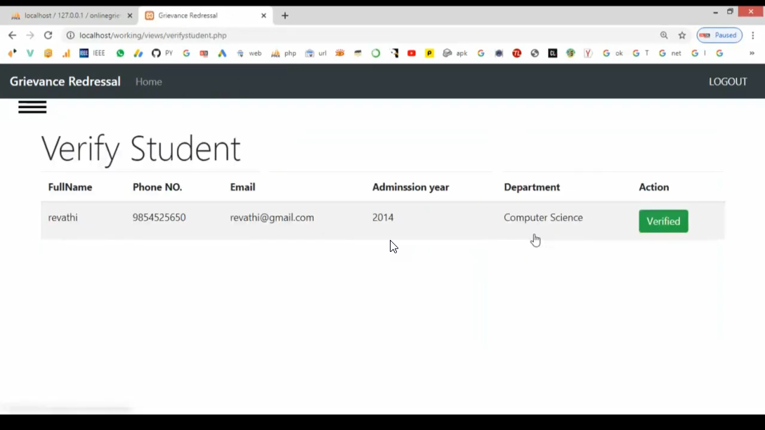 The Grievance Redressal System is a PHP-based web application designed to streamline the process of submitting, tracking, and resolving complaints or grievances within an organization or institution. The system allows users (students, employees, or customers) to lodge grievances online, track their status, and receive timely responses. Administrators or concerned authorities can review, prioritize, and resolve issues efficiently. By digitizing the grievance process, the system increases transparency, accountability, and responsiveness, ensuring that complaints are handled in an organized and time-bound manner.