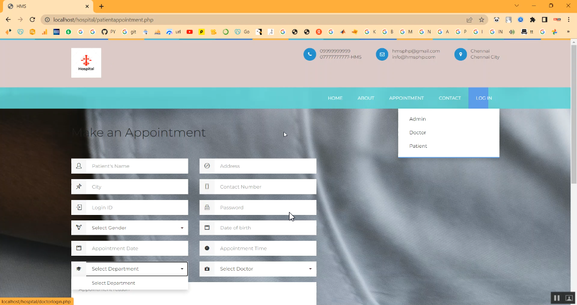 The Hospital Management System is a PHP-based web application designed to automate and streamline the day-to-day operations of a hospital or healthcare center. It provides a centralized platform for managing patient records, doctor schedules, appointments, billing, inventory, staff, and other administrative tasks. The system improves the efficiency of hospital operations, reduces manual paperwork, minimizes errors, and enhances patient care by ensuring quick access to accurate information.