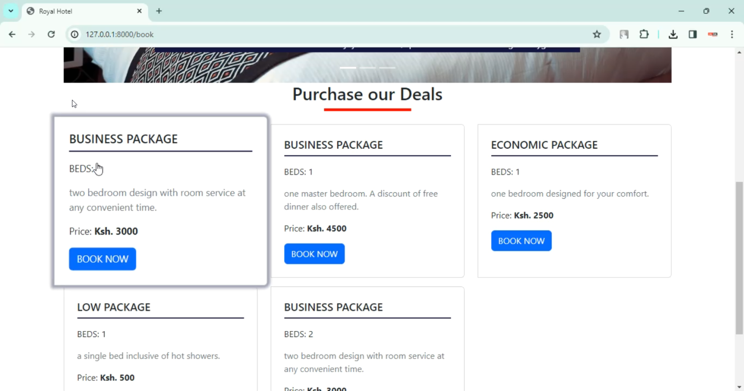 Managing hotel room reservations efficiently is crucial for providing a seamless customer experience and optimizing occupancy. This project focuses on developing a Hotel Room Booking System in Django Python, designed to allow customers to search for available rooms, make bookings, and manage their reservations online. The system also enables hotel administrators to manage room inventory, track bookings, handle cancellations, and generate reports. By leveraging Django’s robust and secure framework, the platform streamlines hotel operations, reduces manual errors, and enhances customer satisfaction.