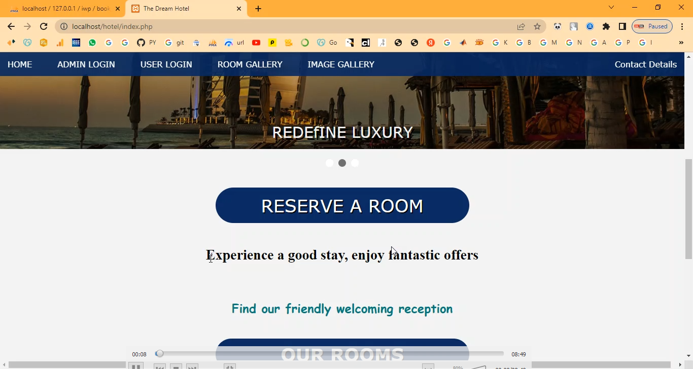 The Hotel Room Booking System is a PHP–MySQL based web application developed to automate the process of booking hotel rooms online. This system allows customers to view available rooms, check prices and amenities, and make reservations instantly. Administrators can manage rooms, pricing, availability, customer records, and payments from a centralized dashboard. By digitizing the room booking process, the system improves efficiency, reduces manual errors, and enhances customer satisfaction through faster and more transparent reservations.