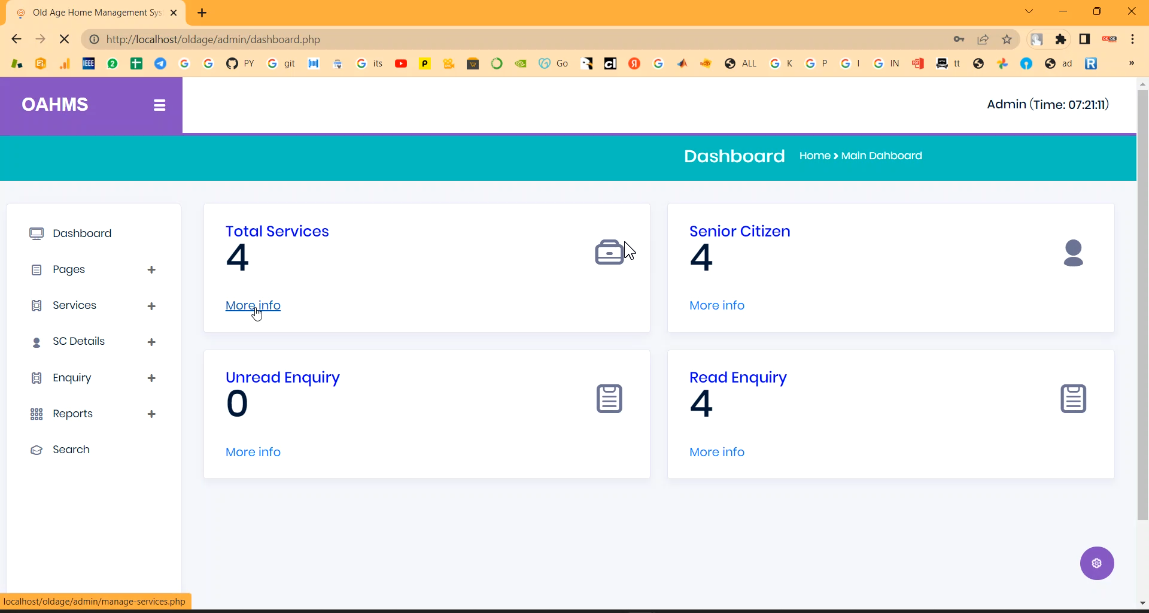The proposed Old Age Home Management System automates all core activities using PHP and MySQL. Administrators can manage resident profiles, track medical histories, schedule staff duties, and record donations in a centralized database. Donors can contribute online, and volunteers can register to participate in events or provide services. The system can also generate reports on resident activities, staff schedules, donations, and expenses for better planning and transparency. By providing a secure, centralized, and user-friendly platform, the system enhances operational efficiency, ensures accurate record-keeping, improves service delivery to residents, and strengthens communication between the old age home and stakeholders.