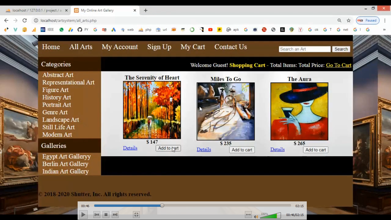 The Online Art Gallery Management System is a PHP–MySQL based web application designed to showcase, manage, and sell artworks online. The system allows artists to upload their artwork, buyers to browse and purchase pieces, and administrators to manage users, art listings, and transactions. By digitizing art gallery operations, the system improves accessibility for artists and customers, reduces administrative effort, and promotes art globally through an easy-to-use online platform.