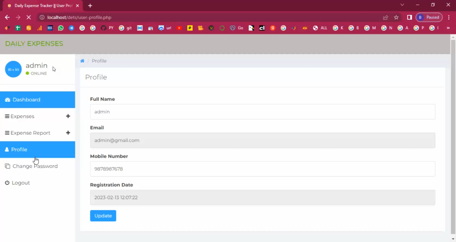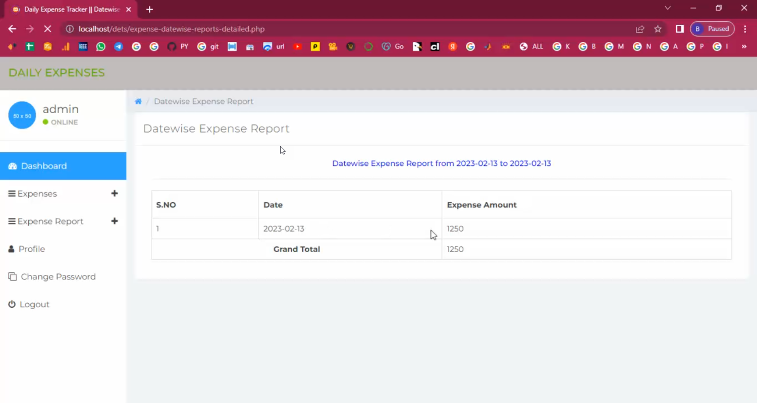 The proposed Online Daily Expense Tracker automates expense management using PHP and MySQL. Users can register and securely log in to record daily income and expenses under customizable categories. The system generates real-time dashboards and reports to show total spending, category-wise breakdown, and monthly trends. It also includes budget-setting features and notifications when spending approaches or exceeds a limit. Administrators (if multi-user) can manage user accounts and monitor expenses for organizations. By providing a centralized, secure, and easy-to-use platform, the system makes financial tracking simpler, more accurate, and accessible from anywhere.