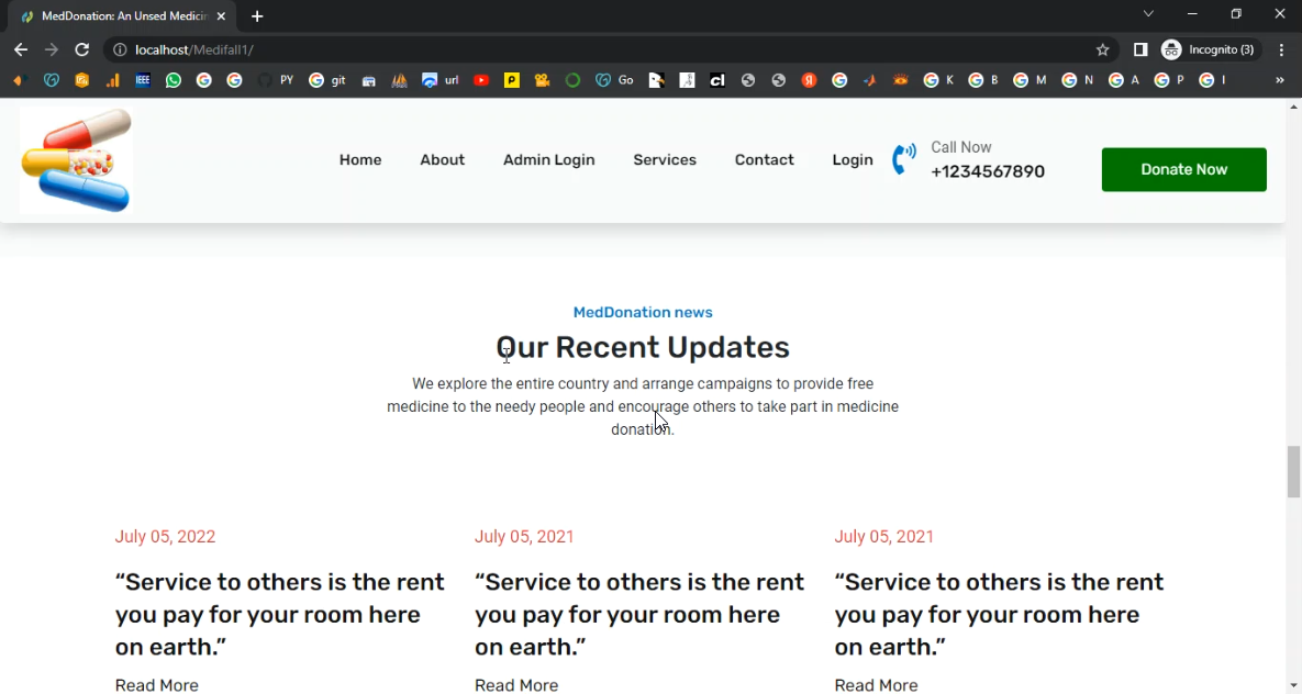 The proposed Online Medicine Donation System automates the entire donation process using PHP and MySQL. Donors can register, upload details about medicines (name, expiry date, quantity, and condition), and schedule pickup or drop-off. Recipients (NGOs, hospitals, or individuals) can log in to browse available medicines, request donations, and track approvals. Administrators can verify medicines, manage user authenticity, approve or reject donation requests, and maintain a secure, centralized record of all transactions. The system also generates reports on donated medicines, recipients, and overall impact. By providing a structured, secure, and user-friendly platform, the system increases transparency, minimizes medicine wastage, and ensures that essential medicines reach those in need on time.