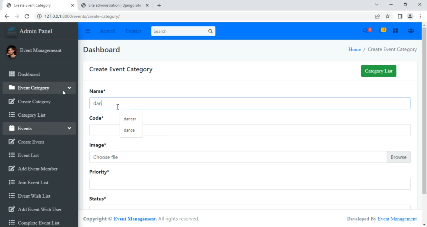 The proposed Organizational Event Management System in Django Python provides a centralized platform where administrators can create event listings, set schedules, allocate resources, and manage budgets. Participants can register online, receive updates, and view event details in real time. The system can include features such as role-based access control, event reminders, attendance tracking, and reporting dashboards. By digitizing event management, the system improves coordination, reduces administrative workload, and enhances participation and transparency within the organization.