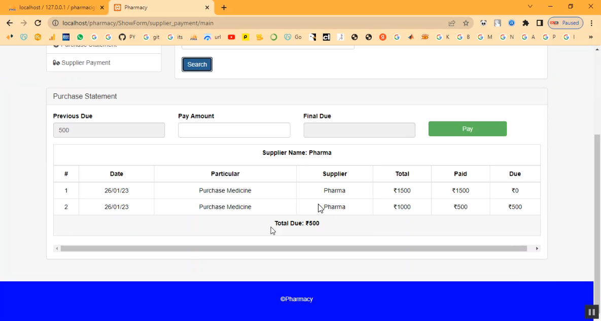 The proposed Pharmacy Information System automates all pharmacy operations using PHP and MySQL. Administrators can add and manage medicine details, including batch numbers, expiry dates, stock quantities, and prices. The system also manages suppliers, purchase orders, and sales transactions. Customers can submit prescriptions (if applicable), order medicines online, and pay securely. The system automatically updates inventory after each transaction and generates reports on stock levels, sales trends, and supplier performance. By offering a centralized, secure, and user-friendly platform, the system reduces manual effort, increases accuracy, and enhances transparency for both pharmacists and customers.