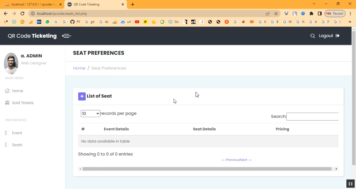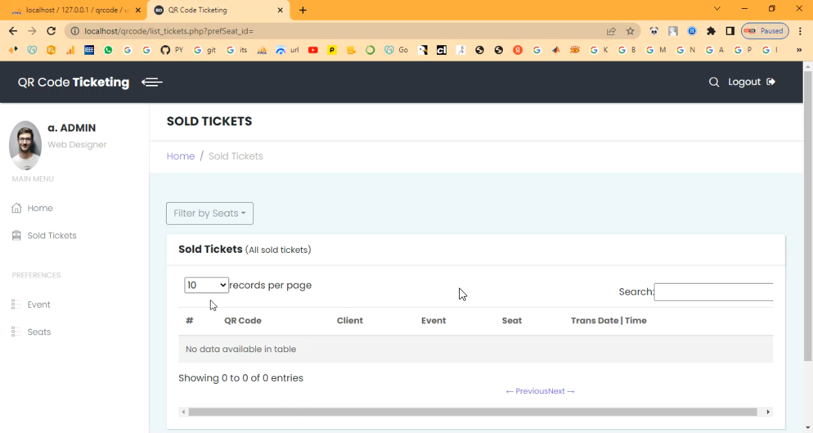The QR Code Ticketing System is a PHP–MySQL based web application designed to automate ticket generation, verification, and management using QR codes. It enables administrators or event organizers to create events, sell tickets online, and generate a unique QR code for each ticket. Customers can book tickets through the website, download or receive their QR code tickets via email, and present them at the venue for scanning. Staff can validate tickets instantly by scanning the QR code, which improves speed, reduces fraud, and enhances user experience.