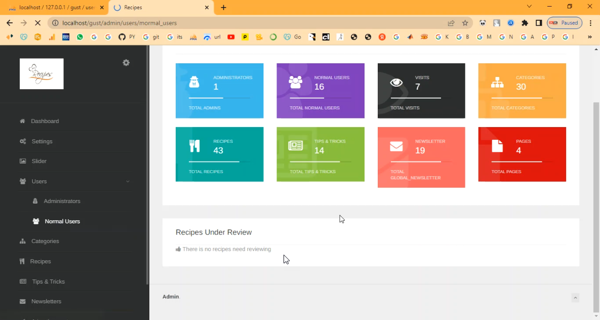 The proposed Recipes Guidance System in PHP provides a centralized, user-friendly platform for managing and accessing recipes. Administrators or chefs can add and update recipes, including ingredients, step-by-step instructions, images, and videos. Users can register, search, filter, and bookmark recipes according to their preferences. The system can also include features such as rating, comments, weekly meal plans, and suggested recipes based on available ingredients. By offering a secure, organized, and interactive platform, the system enhances the cooking experience, saves time, and encourages users to explore diverse cuisines efficiently.
