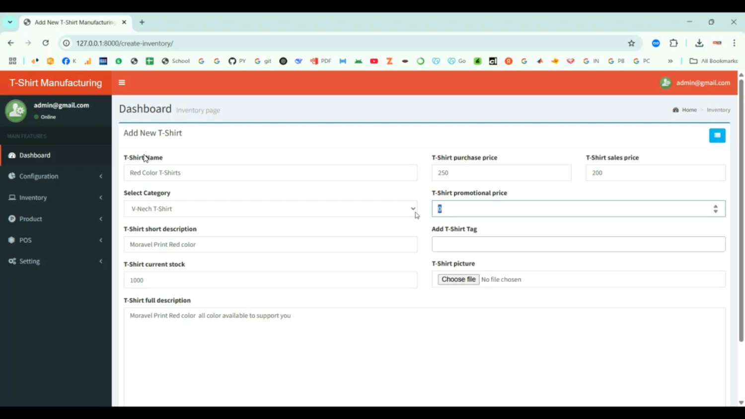 T shirt Manufacturing and Maintenance System in Django Python