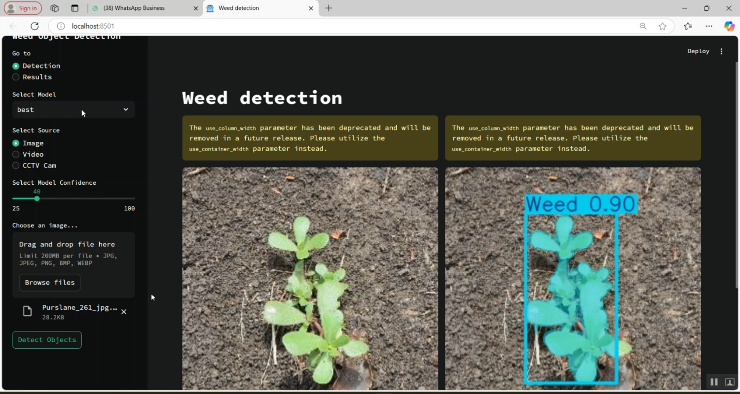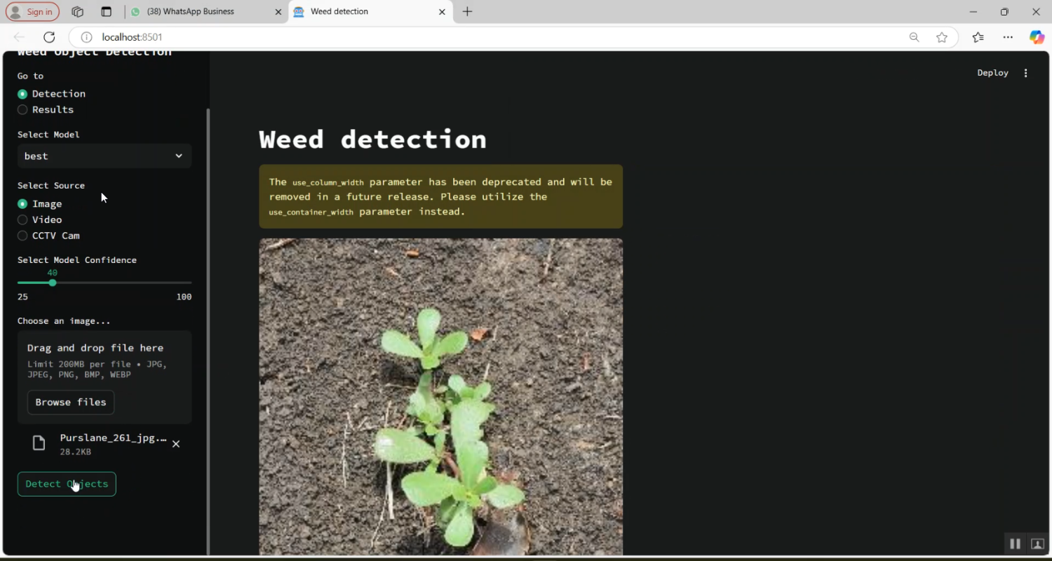 Weed infestation is a major challenge in agriculture, causing reduced crop yield and increased production costs. The project Weed Detection in Python Projects focuses on developing an intelligent system that detects and classifies weeds in crop fields using image processing and machine learning techniques. Python is chosen as the development platform due to its extensive libraries for image analysis, data processing, and deep learning, including OpenCV, TensorFlow, Keras, NumPy, and Scikit-learn. The system captures images from crop fields, preprocesses them to remove noise and enhance features, and applies convolutional neural networks (CNNs) or other deep learning models to identify weeds accurately. This automated approach enables farmers to implement targeted weed control measures, reducing herbicide usage and improving crop productivity.