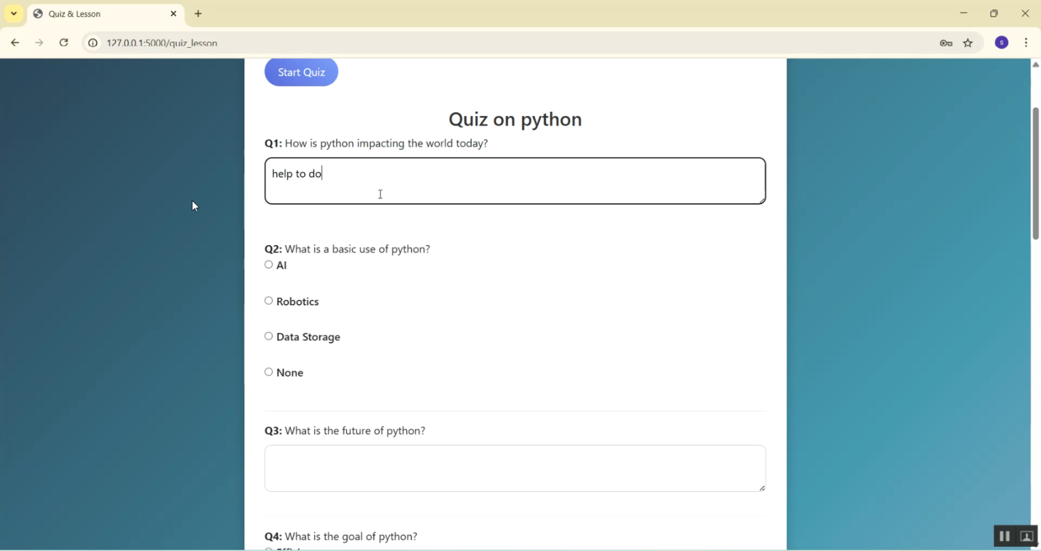 The existing learning systems rely heavily on traditional e-learning platforms that provide static content without interactive AI-based feedback or personalized teaching. Most current online education platforms only allow students to view study materials or recorded videos, with no real-time adaptive learning support. Human teachers are required to manually correct assignments, clarify doubts, and track individual student progress, which is time-consuming and inefficient. Existing automated learning systems lack emotional intelligence, natural language understanding, and contextual awareness, making it difficult for students to receive personalized academic support. Additionally, current systems do not provide intelligent assistance based on learning history, student behavior, or performance analytics. These limitations lead to reduced student engagement, slower learning progress, and a one-size-fits-all teaching method that fails to address individual learning needs.