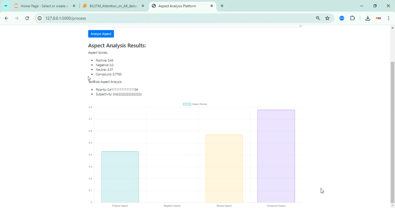 The proposed system introduces a Python-based aspect extraction framework that leverages advanced NLP and deep learning techniques to identify aspects in online text automatically. The system preprocesses text data using tokenization, stopword removal, lemmatization, and POS tagging. Contextual embeddings are generated using models like BERT or RoBERTa, which capture semantic meaning and context. These embeddings are fed into a sequence labeling model (e.g., LSTM-CRF) to detect aspects and their associated sentiments. Extracted aspects are visualized using word clouds, bar charts, or network graphs to provide actionable insights. The system can process large-scale online reviews or social media posts efficiently and can be integrated with a simple user interface using Streamlit or Flask for interactive aspect extraction and sentiment visualization. This approach improves accuracy, scalability, and interpretability, offering a practical solution for opinion mining and market intelligence.
