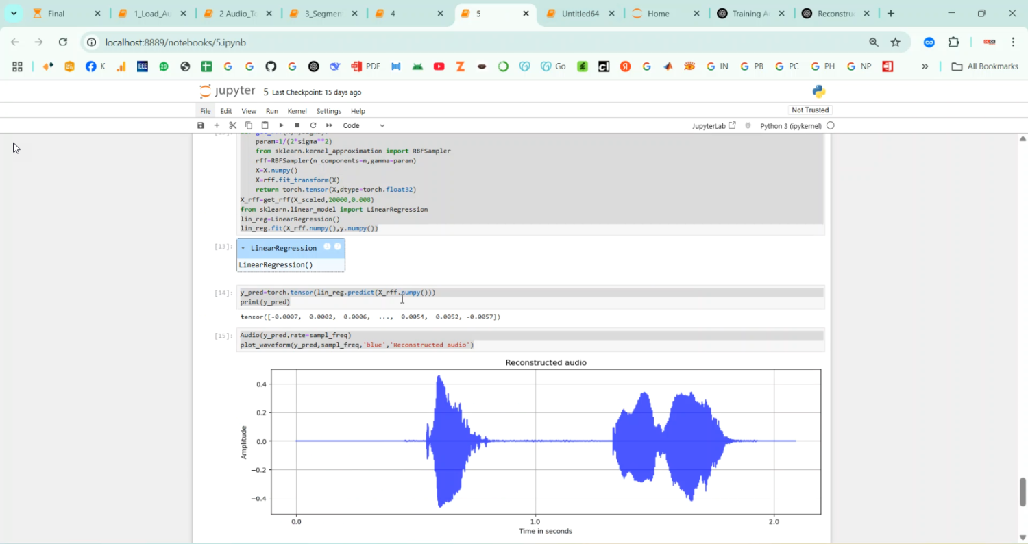 Audio reconstruction is an essential area in digital signal processing and machine learning that focuses on restoring or enhancing audio signals from incomplete, noisy, or degraded recordings. The project titled Audio Reconstructed in Python Projects aims to develop a system that can reconstruct high-quality audio from corrupted, low-bitrate, or partially missing recordings using AI techniques. Python is chosen as the development platform due to its rich ecosystem of libraries such as NumPy, SciPy, Librosa, TensorFlow, and PyTorch, which facilitate audio processing, feature extraction, and deep learning model implementation. The system uses signal processing methods combined with neural networks, including Autoencoders, Convolutional Neural Networks (CNN), and Recurrent Neural Networks (RNN), to predict missing audio segments and improve signal clarity. This project demonstrates how AI-driven audio reconstruction can enhance audio quality for music, speech, and communication systems while enabling real-time applications in various multimedia domains.