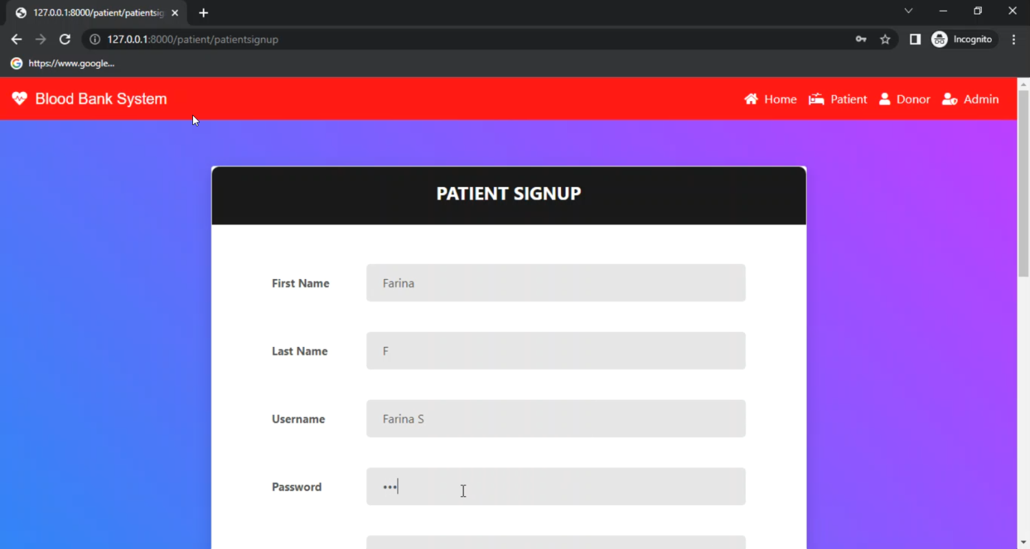 Blood is a vital resource in healthcare, and ensuring its availability at the right time can save countless lives. However, manual management of blood donors, stock, and requests often results in inefficiency and delays. This project, Blood Bank Management System in Django Python, is designed to provide a centralized web-based platform to manage blood donation, storage, and distribution. Developed using the Django framework, the system allows donors to register and schedule donations, recipients to request specific blood groups, and hospitals/administrators to manage blood inventory in real-time. Features such as automated notifications, donor eligibility checks, request approval, and reporting tools are integrated to improve efficiency. The application enhances transparency, reduces manual errors, and provides a streamlined approach to blood bank operations.