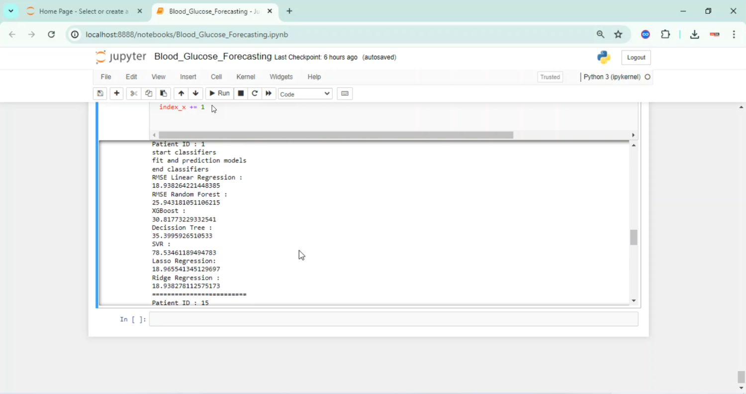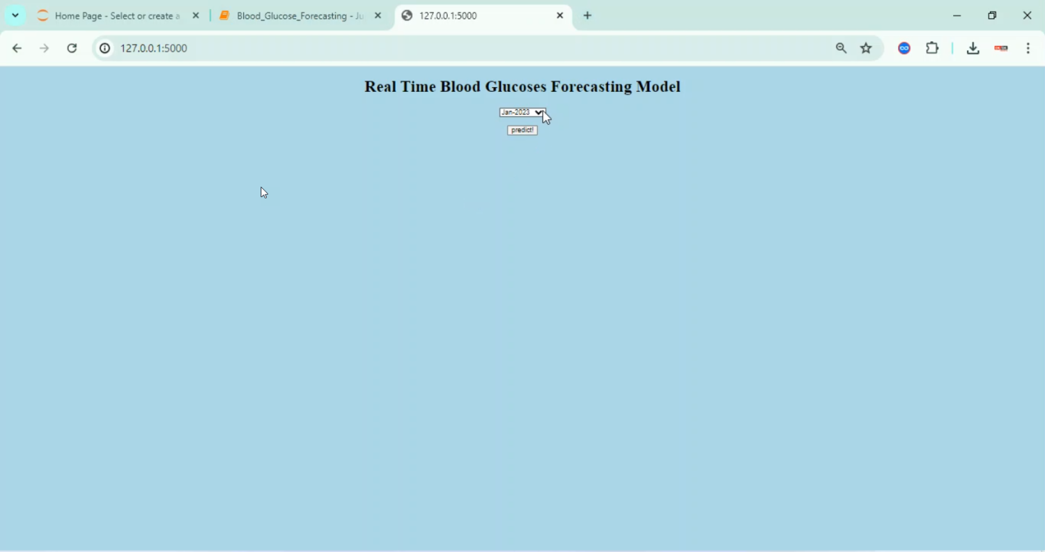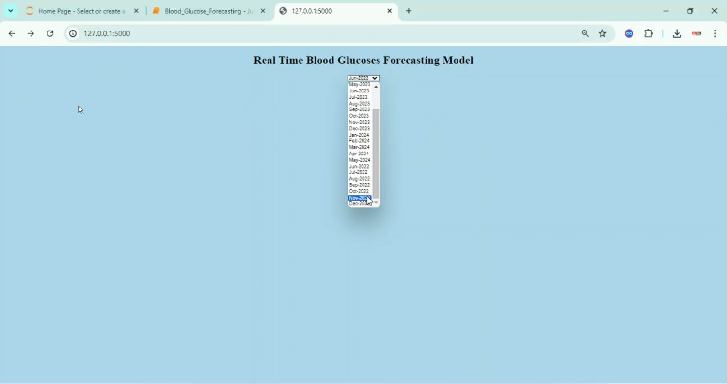 Accurate forecasting of blood glucose levels is crucial for effective diabetes management and timely intervention. This project presents a Blood Glucose Forecasting System using Python, which leverages time-series analysis and machine learning techniques to predict future glucose levels based on historical data from continuous glucose monitoring (CGM) devices, dietary intake, physical activity, and other physiological parameters. The system uses models such as ARIMA, LSTM, and GRU networks to capture temporal dependencies and trends in glucose fluctuations. Python libraries including Pandas, NumPy, Matplotlib, Scikit-learn, and TensorFlow/Keras are employed for data preprocessing, visualization, model training, and evaluation. By providing accurate glucose predictions, the system aids patients and healthcare providers in making informed decisions for insulin dosing, diet planning, and lifestyle management.