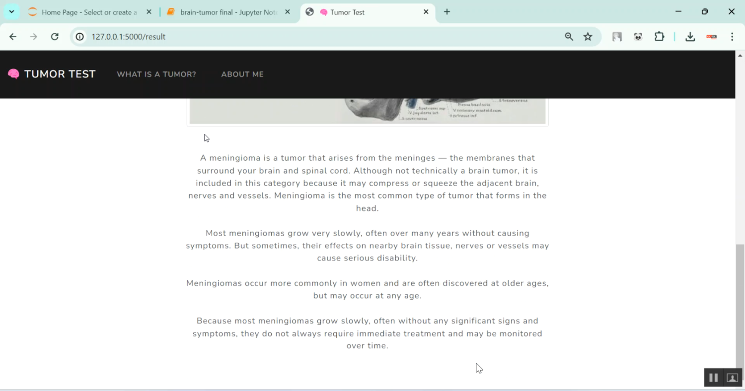 In existing systems, brain tumor test reporting is typically performed manually by radiologists, who analyze MRI scans and compile information into textual reports. This manual process is time-consuming, prone to human error, and often lacks standardization, making it difficult to maintain consistent report formats. Some semi-automated tools assist in measuring tumor dimensions or highlighting regions of interest, but they still require significant manual input and interpretation. Consequently, the efficiency and accuracy of test reporting remain limited, especially when handling large numbers of patient scans.