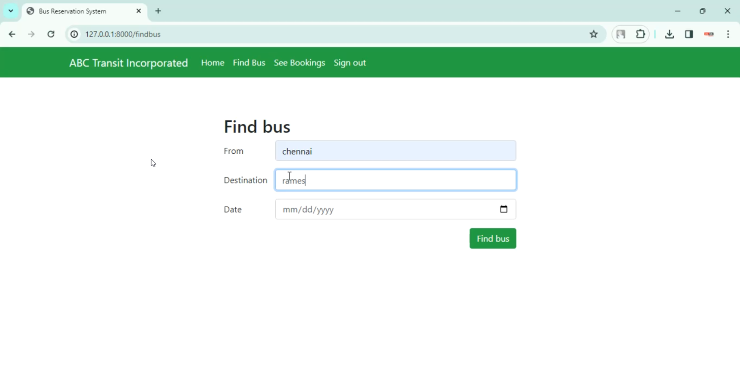 Bus travel is one of the most widely used modes of transportation, and the demand for an efficient reservation system has increased with the growth of digital technologies. Manual booking methods are slow and error-prone, often leading to overbooking and poor customer experiences. The Bus Reservation System in Django Python is a web-based application designed to automate the process of bus ticket reservations, cancellations, and schedule management. Users can search routes, view seat availability in real time, make reservations, cancel bookings, and track their travel history, while administrators can manage buses, routes, schedules, bookings, and generate reports. Built using the Django web framework, the system follows the MVT (Model-View-Template) architecture, ensuring scalability, data security, and user-friendly interaction. The goal of this project is to provide a reliable, centralized platform that enhances efficiency, accuracy, and convenience in bus travel reservations.