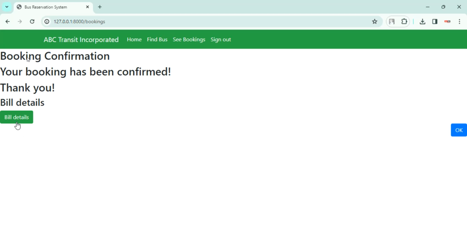 The proposed Django-based Bus Reservation System automates ticket booking and schedule management. Passengers can sign up, log in, view bus schedules, check available seats, reserve tickets, cancel reservations, and get confirmation via email/SMS. Administrators can add or edit bus details, define routes, set timings, monitor seat occupancy, and generate reports for better management. Features such as role-based dashboards, secure authentication, payment integration, and real-time availability updates make the system reliable and user-friendly. Compared to manual methods, this system ensures 24/7 accessibility, reduced booking errors, transparent seat availability, streamlined administration, and enhanced customer satisfaction.