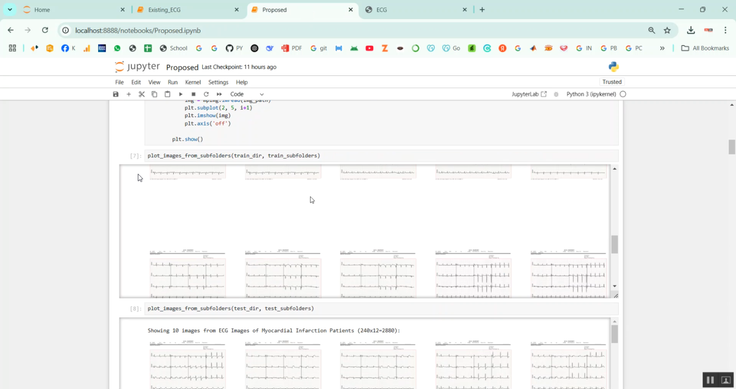 The proposed system introduces a Python-based deep learning framework for detecting cardiovascular diseases from ECG images. Raw ECG images are preprocessed using techniques like noise removal, normalization, resizing, and contrast enhancement. Feature extraction is performed using convolutional layers, while a CNN or pre-trained transfer learning models such as ResNet, VGG16, or EfficientNet are employed for classification into normal and various disease categories. The system is trained on labeled ECG datasets to learn complex patterns and variations in ECG waveforms. Evaluation metrics such as accuracy, precision, recall, F1-score, and confusion matrix are used to validate model performance. The system also includes a user-friendly interface for uploading ECG images and receiving automated diagnostic results. This approach reduces manual workload, increases diagnostic accuracy, and supports early detection and monitoring of cardiovascular diseases, making it valuable for clinical applications.