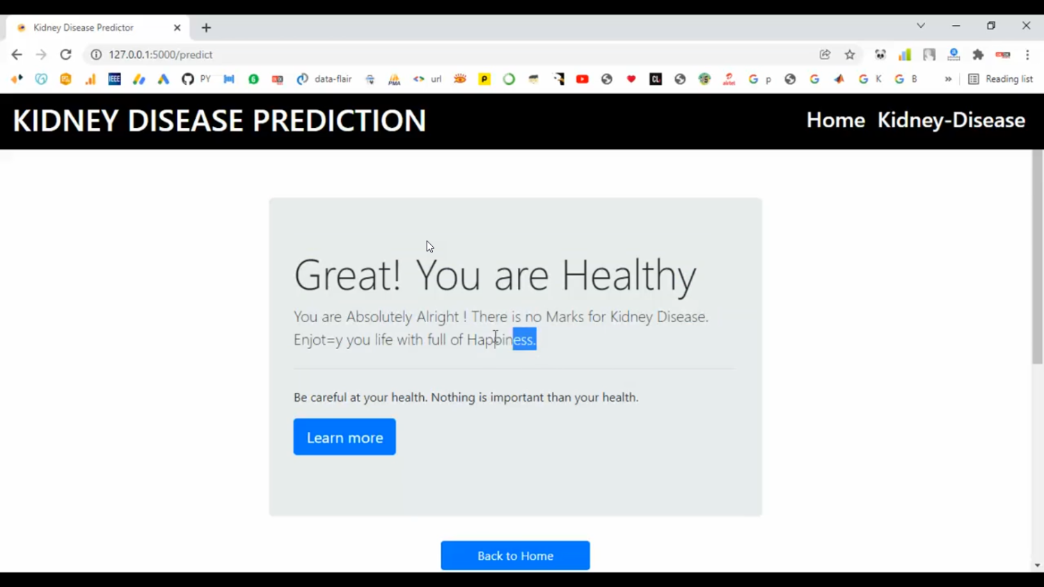 Chronic Kidney Disease (CKD) is a severe health condition that can lead to kidney failure if not diagnosed and managed early. Traditional diagnosis often requires multiple lab tests and expert medical analysis, which can be time-consuming and inaccessible in some areas. This project, Chronic Kidney Data Train Flask App in Python, focuses on developing an automated system that predicts the likelihood of CKD using patient data. The system uses machine learning models such as Random Forest, Support Vector Machine (SVM), or Neural Networks to analyze clinical and demographic features such as blood pressure, glucose levels, blood urea, creatinine, and age. Implemented in Python using Pandas, NumPy, Scikit-learn, and Flask, the trained model is deployed as a web application where users can input patient data and receive real-time predictions, facilitating early diagnosis and intervention.