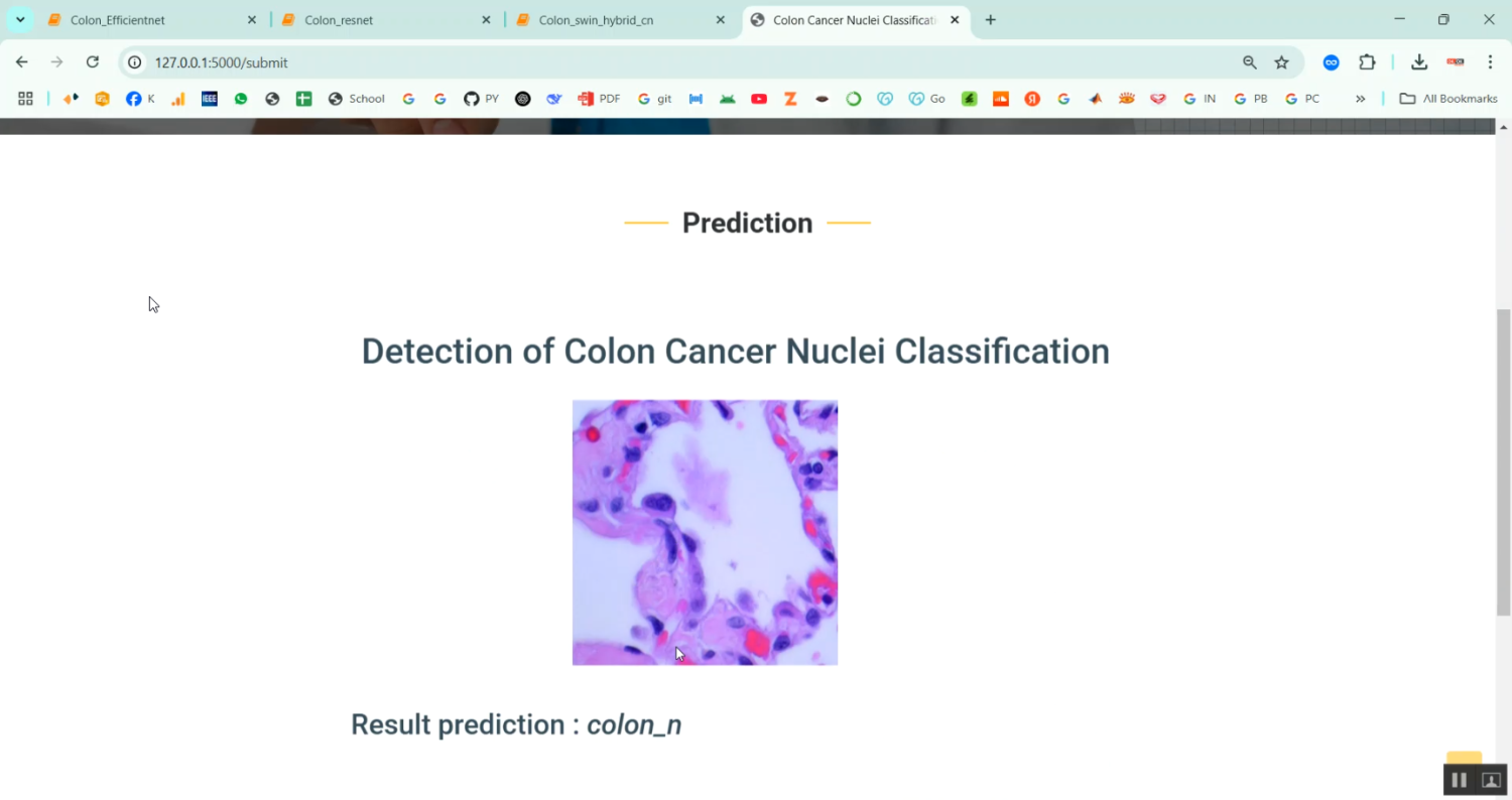 Colon cancer is one of the most common and life-threatening cancers worldwide. Accurate and early diagnosis plays a crucial role in effective treatment and patient survival. The project titled Colon Cancer Nuclei Classification in Python Projects focuses on building an automated classification system that identifies cancerous cell nuclei from histopathological images of colon tissue. Python is used as the development platform due to its powerful libraries for image processing and deep learning, such as OpenCV, NumPy, TensorFlow, Keras, and Scikit-learn. The system processes microscopic images, segments nuclei regions, extracts relevant features, and classifies them as benign or malignant using Convolutional Neural Networks (CNN). This automated diagnostic tool enhances pathological analysis by increasing detection accuracy, reducing manual effort, and supporting medical experts in clinical decision-making.