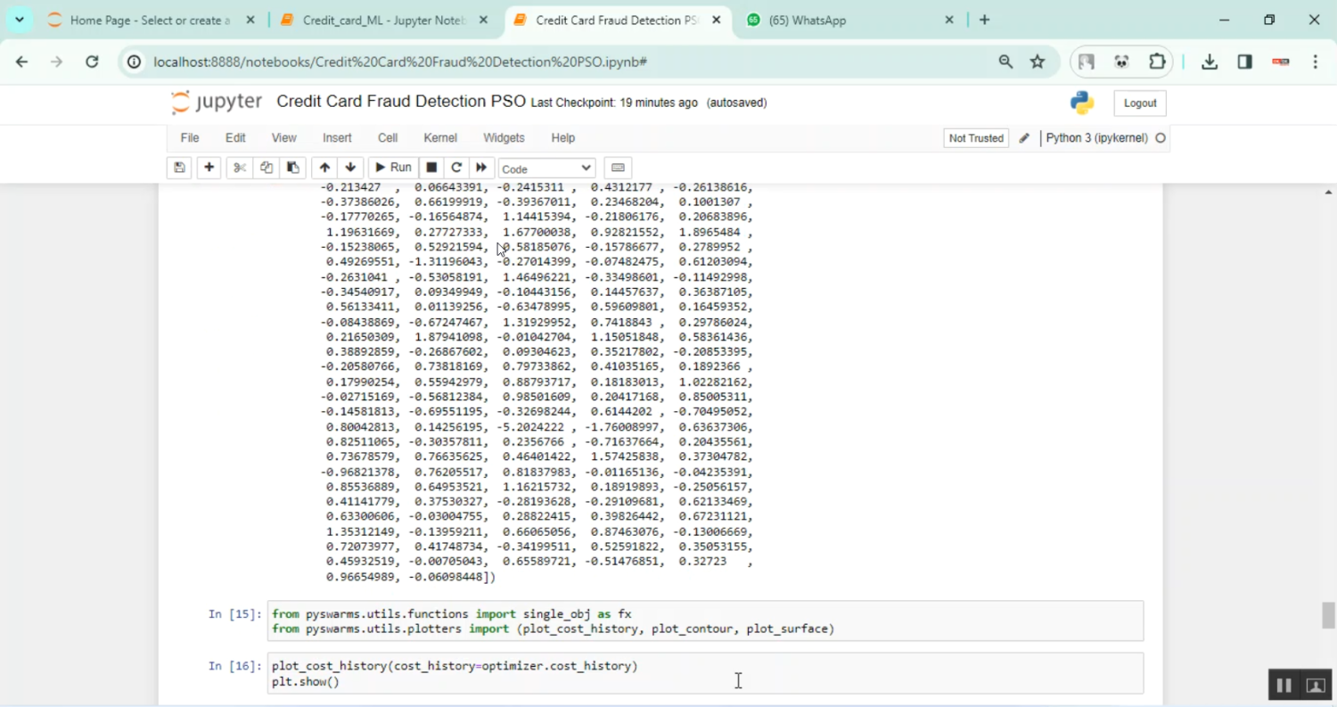 The proposed system integrates Particle Swarm Optimization (PSO) with machine learning to improve credit card fraud detection in Python. PSO is used to identify the most significant features from the transactional dataset, reducing dimensionality and improving classifier performance. Selected features are fed into supervised learning algorithms such as Random Forest, XGBoost, or Gradient Boosting to classify transactions as legitimate or fraudulent. The system also addresses class imbalance using techniques like SMOTE (Synthetic Minority Over-sampling Technique) to enhance detection of rare fraudulent events. Python libraries including Pandas, NumPy, Scikit-learn, and PySwarms are used for data preprocessing, PSO implementation, model training, and evaluation. By optimizing feature selection and combining it with robust classifiers, the system achieves higher accuracy, reduced false positives, and real-time fraud detection. This ensures secure financial transactions and effective risk management in banking systems.