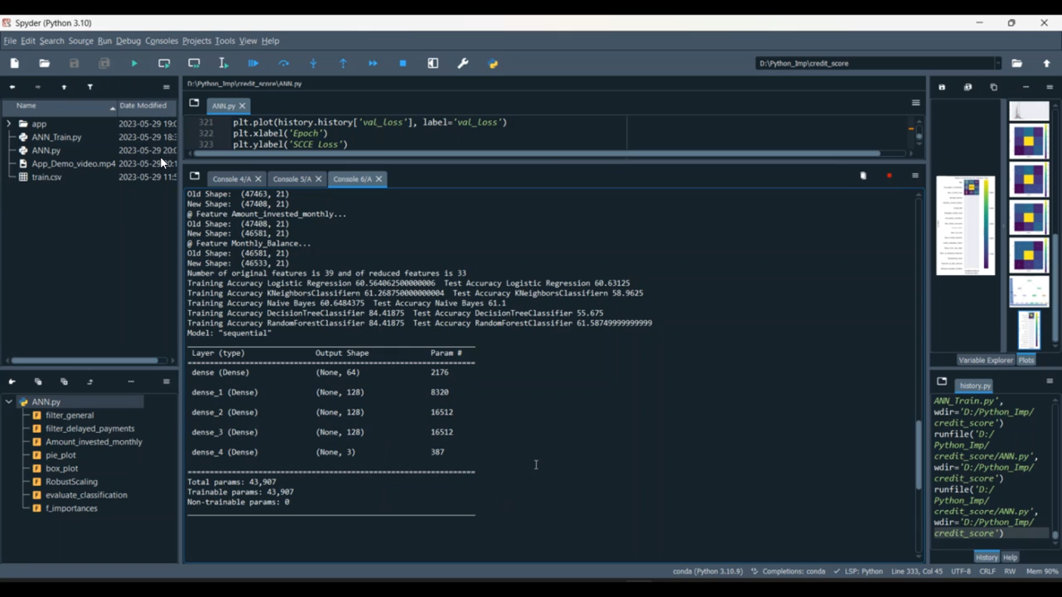 Credit score prediction is a crucial task in the financial sector, as it helps banks, lenders, and credit agencies assess the financial reliability of individuals before granting loans or credit. Traditional scoring systems often rely on rule-based approaches and statistical models, which may not effectively capture complex patterns in customer financial data. This project, Credit Score Prediction Using Artificial Neural Networks (ANN) in Python, leverages deep learning to predict whether a customer has a good, average, or poor credit score based on attributes such as income, repayment history, loan defaults, credit utilization, and transaction behaviors. The system uses Python libraries such as TensorFlow/Keras, Pandas, NumPy, and Scikit-learn to preprocess the dataset, normalize features, and train ANN models for classification. The proposed approach provides higher accuracy, flexibility, and reliability in predicting credit scores, assisting financial institutions in risk assessment and decision-making.