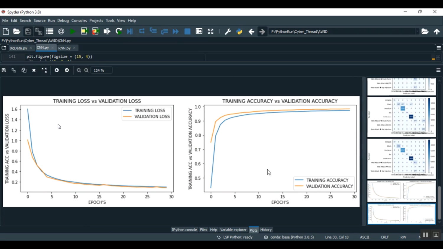 Cybersecurity threats targeting wireless and wired networks are growing in complexity, requiring automated solutions for detection and classification. Public datasets such as UNSW-NB15 and AWID provide large-scale, labeled network traffic that can be used to train machine learning models for intrusion detection. The project “Cyber Threat UNSW AWID in Python” focuses on building a Python-based application that ingests these datasets, applies advanced preprocessing, and develops machine learning models to detect and classify cyber threats. Using Python libraries such as Pandas, Scikit-learn, and TensorFlow/PyTorch, the system evaluates different algorithms (Random Forest, Gradient Boosting, SVM, and Deep Neural Networks) and applies feature selection to identify the most influential predictors. The project demonstrates how open datasets can be used to build scalable and accurate intrusion detection tools.