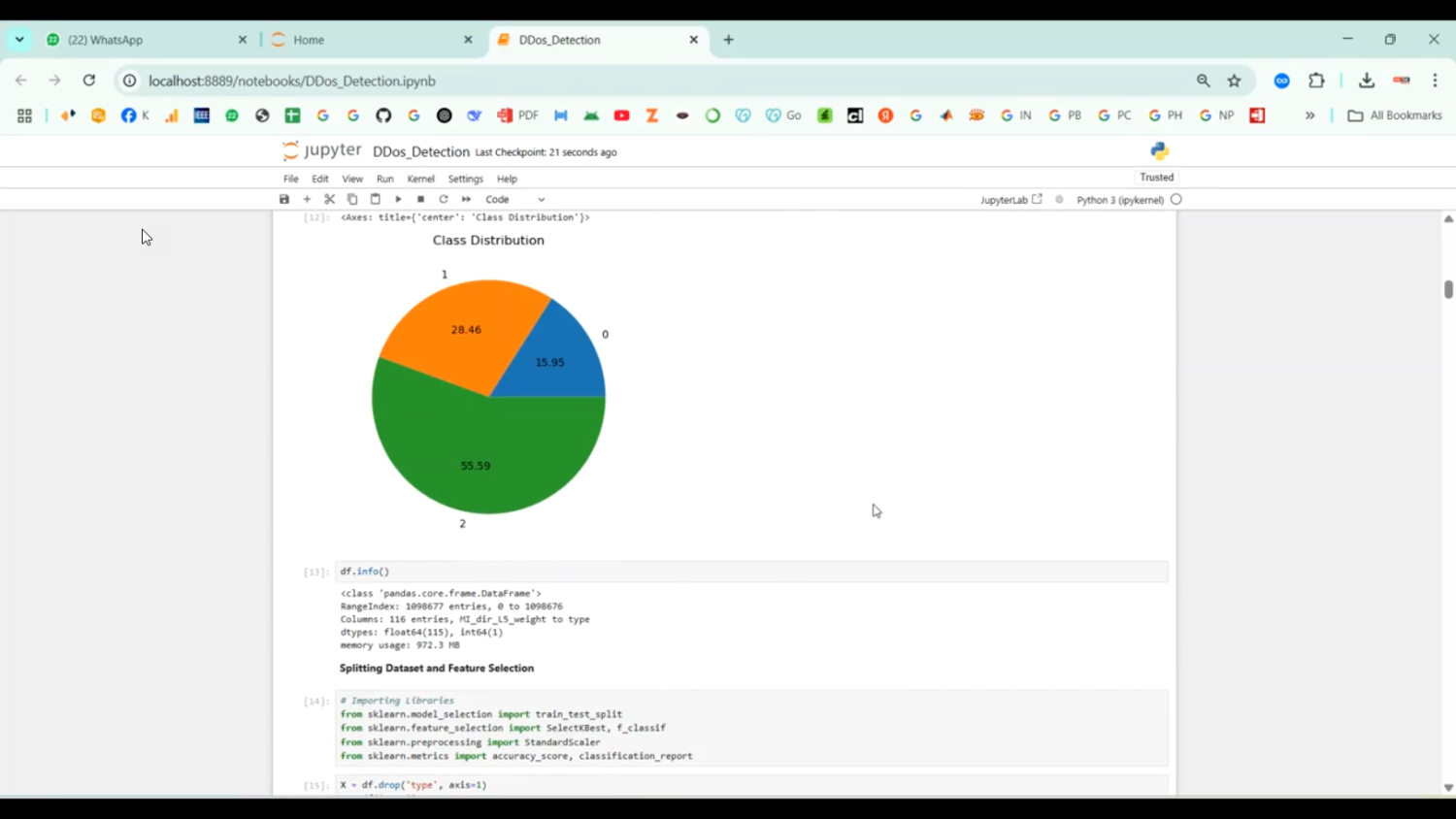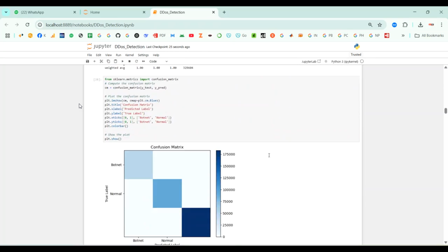Distributed Denial of Service (DDoS) attacks remain one of the most disruptive cyber threats, overwhelming networked services by flooding them with high-volume traffic or exploiting protocol vulnerabilities to exhaust resources. The project DDoS Attack Detection in Python Projects aims to design and implement an intelligent detection system that identifies and classifies DDoS attacks in real time using a combination of statistical analysis, machine learning, and deep learning. Python is selected as the development platform for its strong networking, data-processing, and ML libraries such as Scapy, Pandas, NumPy, Scikit-learn, TensorFlow, and PyTorch. The system collects network flow and packet-level features, performs feature engineering and dimensionality reduction, and applies supervised and unsupervised models (e.g., Random Forest, XGBoost, Isolation Forest, LSTM) to detect volumetric, protocol, and application-layer attacks. Real-time alerting, visualization dashboards, and integration hooks for automated mitigation complete the pipeline, enabling faster incident response and improved service availability.