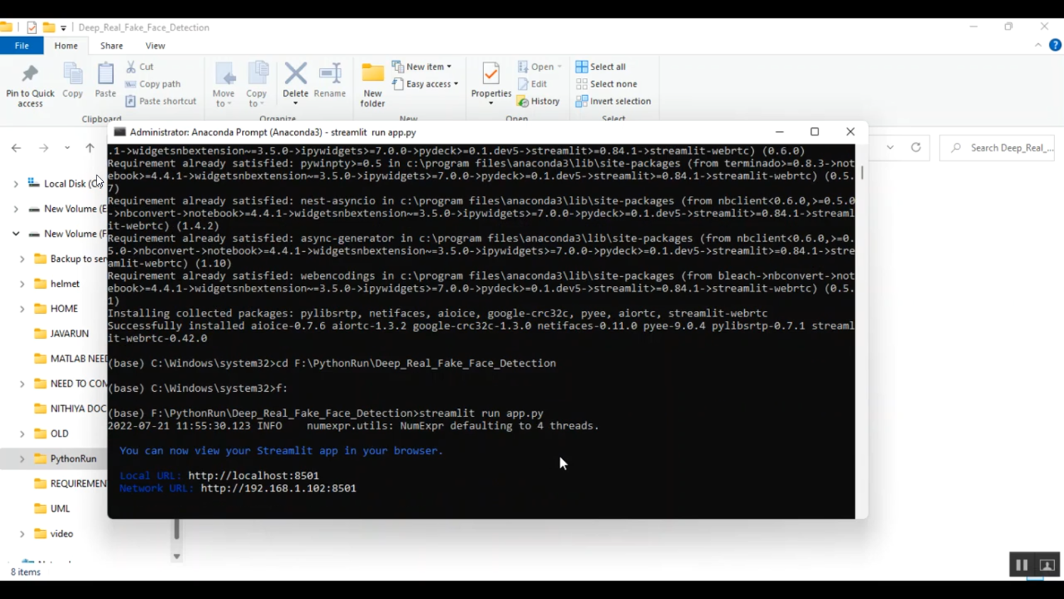 The proposed Python project introduces a deep learning–driven detection system to classify real and fake faces with higher accuracy. The pipeline begins with data preprocessing, including face detection and alignment (via dlib/OpenCV), resizing, and normalization. For images, CNNs extract pixel-level and frequency-domain features that reveal manipulation artifacts. For videos, a CNN–LSTM hybrid model is employed to capture both spatial and temporal patterns. Additional techniques such as Fourier spectrum analysis or attention mechanisms are used to highlight forged regions. The trained model outputs a probability score indicating whether the face is real or fake. Finally, the project integrates a Flask web application to allow users to upload an image/video and receive real-time classification with visualization of model attention maps. This system not only enhances detection accuracy but also improves transparency and usability for researchers, students, and security professionals.