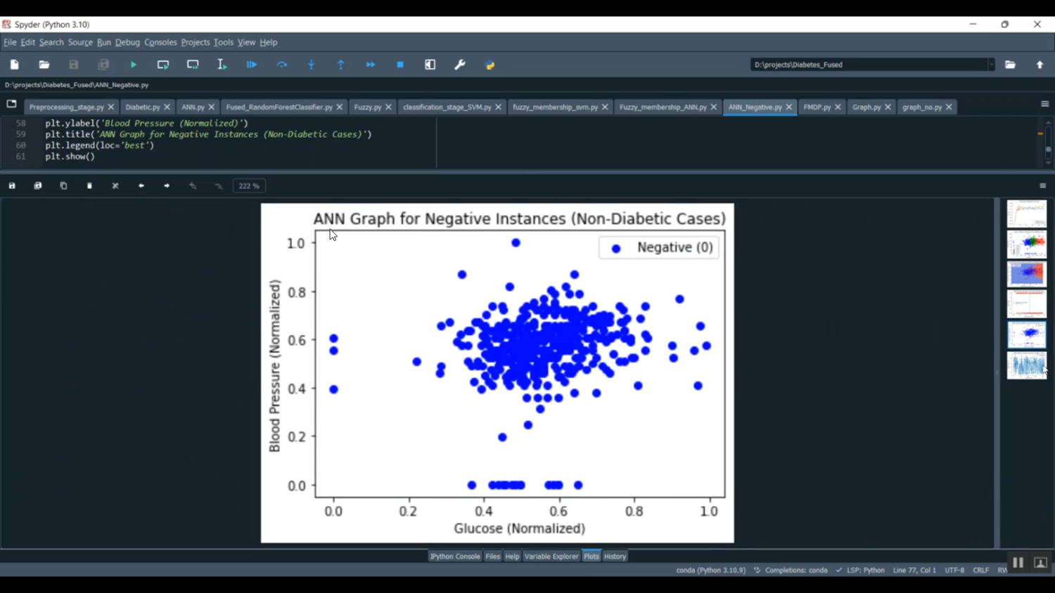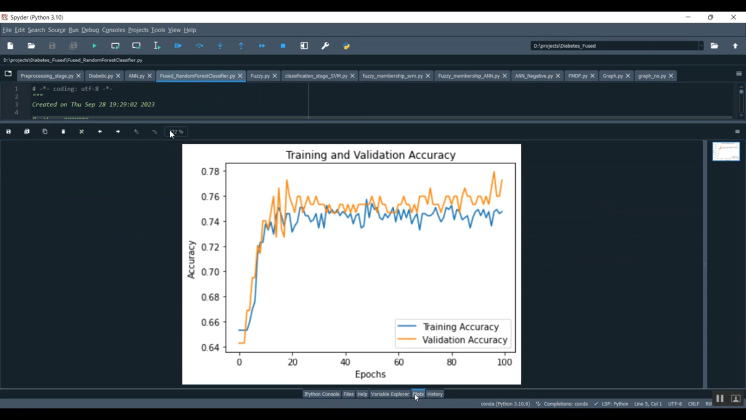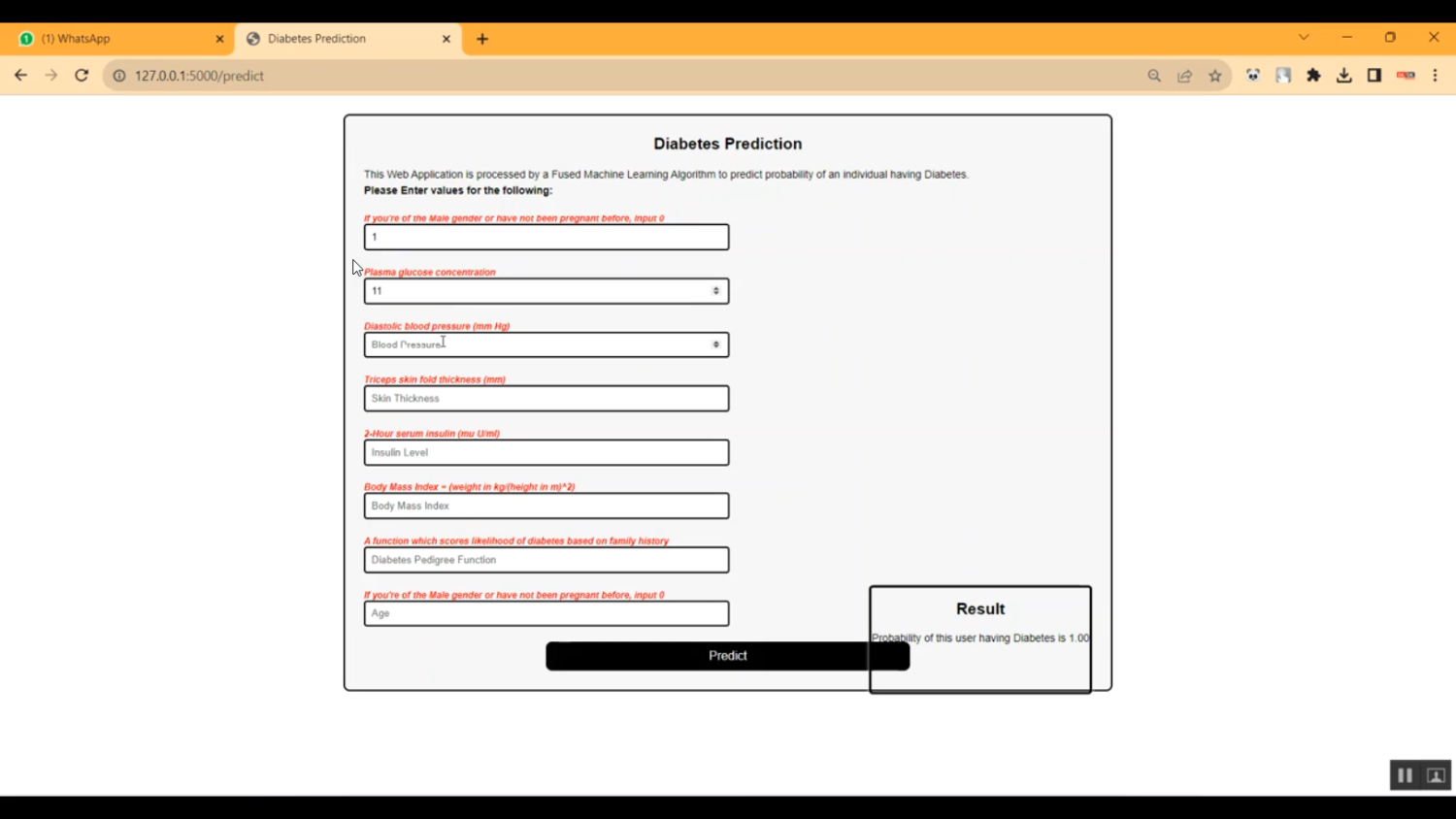 The proposed system introduces a fused machine learning framework for diabetes prediction, combining the strengths of multiple classifiers to deliver improved accuracy and stability. Data preprocessing includes handling missing values, normalization, and feature selection to enhance model performance. Individual classifiers are trained, and their predictions are integrated using ensemble fusion methods such as majority voting, weighted averaging, or stacking with a meta-classifier. This fusion reduces variance, bias, and classification errors compared to single models. The system provides risk predictions (diabetic or non-diabetic) along with confidence scores, enabling users to better understand their health status. The final solution is designed as a Python-based predictive tool with visualization support, making it accessible to both healthcare providers and individuals for early diabetes risk assessment.