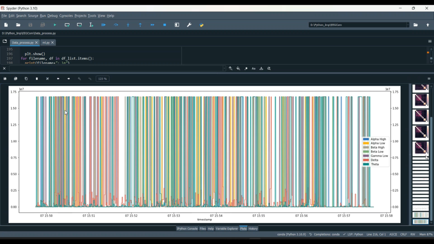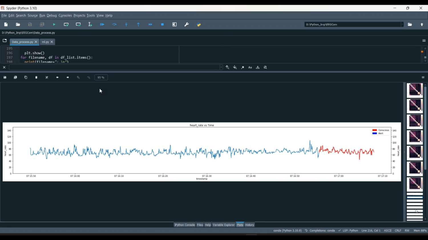 The project “EEG Heart ML Classification in Python” focuses on classifying cardiac-related conditions or heart states using EEG (Electroencephalogram) signals. While EEG primarily captures brain activity, research has shown correlations between brain signals and cardiac conditions such as stress-induced heart variations, arrhythmia, and heart rate irregularities. This system preprocesses EEG signals using filtering, artifact removal, and feature extraction from various frequency bands (delta, theta, alpha, beta). Machine learning models such as Support Vector Machines (SVM), Random Forest, Decision Trees, and Neural Networks are trained to classify heart states based on EEG features. Python libraries including MNE, SciPy, NumPy, Pandas, and Scikit-learn/TensorFlow/Keras are used for signal processing, model training, and evaluation. The project provides a non-invasive, AI-powered approach for early detection and monitoring of cardiac conditions.