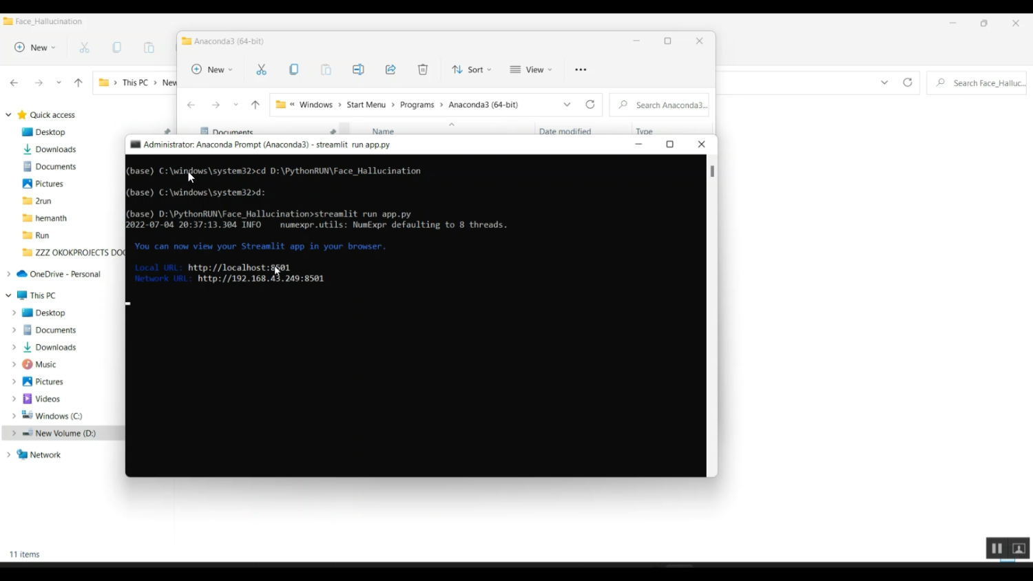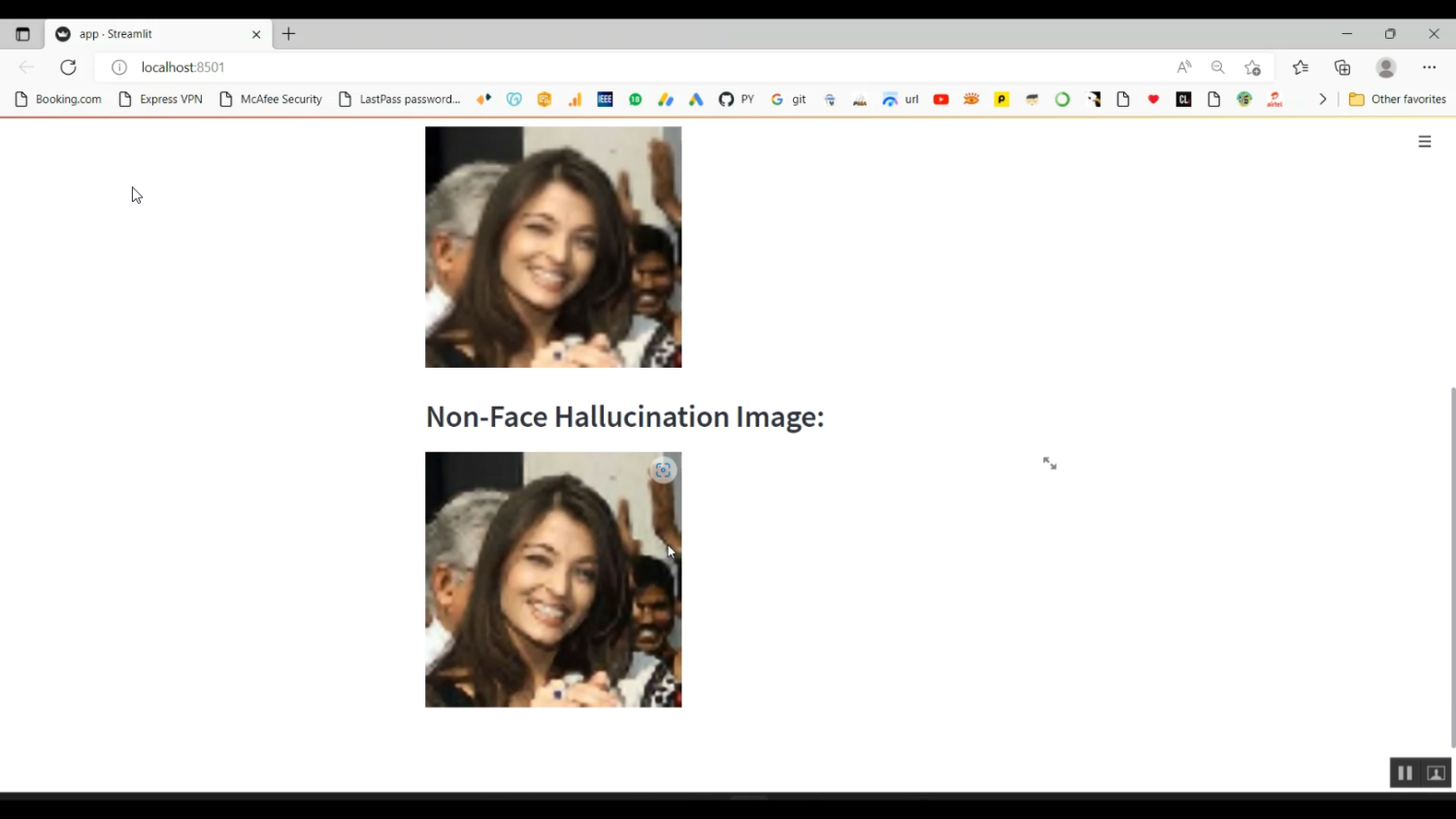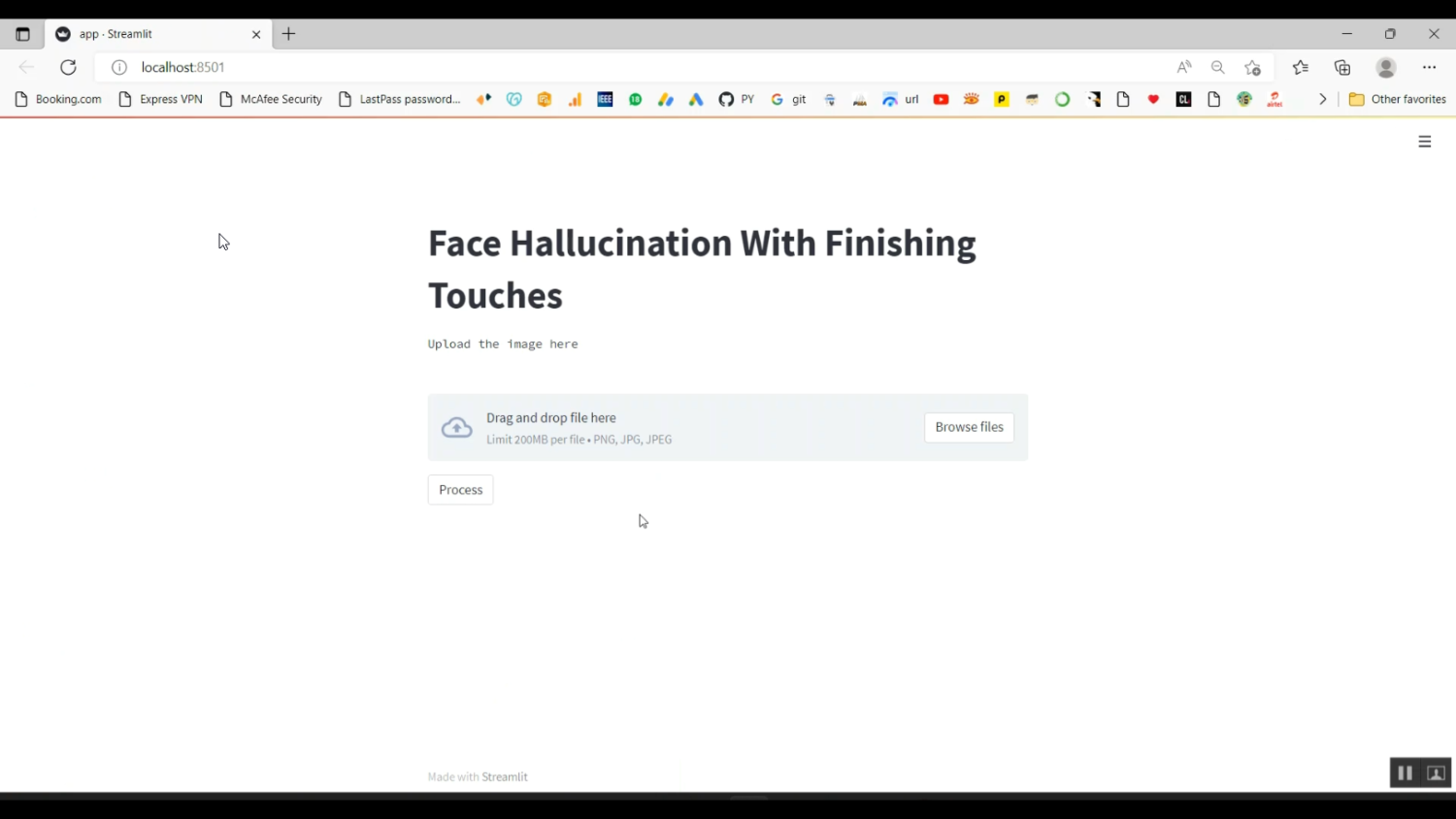 Face hallucination, also known as facial super-resolution, is the process of generating high-resolution facial images from low-resolution inputs. This technique is critical in applications such as facial recognition, video surveillance, digital entertainment, and historical image restoration. This project focuses on developing a Python-based Streamlit application that performs face hallucination using deep learning techniques. By leveraging Convolutional Neural Networks (CNNs) and Generative Adversarial Networks (GANs), the system enhances the clarity and details of low-resolution facial images while preserving essential facial features. The integration with Streamlit provides an interactive platform for users to upload images, apply face hallucination models, and visualize high-resolution outputs in real time. This approach demonstrates how AI-powered solutions can improve facial image quality efficiently and effectively.