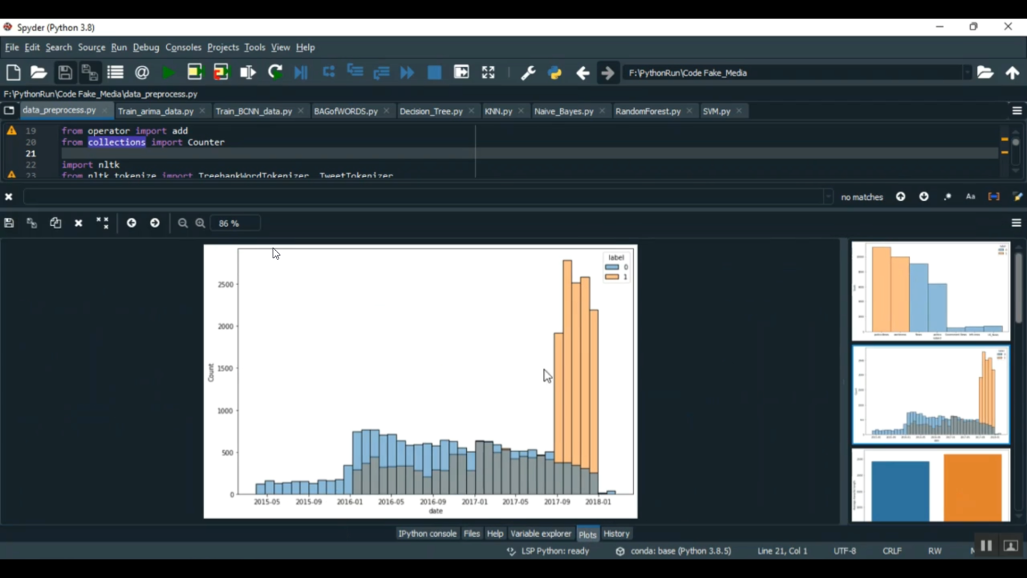 The rapid growth of digital media has increased the spread of fake news, which can mislead the public and cause social, political, and economic consequences. Detecting false information in news articles has become essential for maintaining credible information sources. This project develops a Python-based Fake Media News Detection system that uses machine learning and natural language processing (NLP) techniques to automatically identify misleading or false news content. The system analyzes textual features, linguistic patterns, and metadata from news articles to classify them as real or fake. By providing accurate and automated detection, the system supports journalists, media platforms, and users in mitigating misinformation and ensuring the reliability of online content.