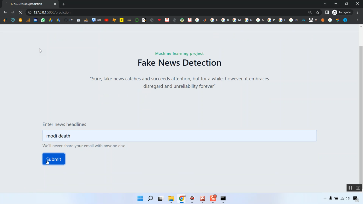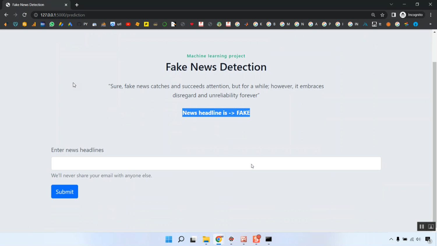 The proposed system introduces a Python-based app that integrates NLP preprocessing, feature extraction, and machine learning classification for fake news detection. News articles are cleaned and tokenized, removing stopwords and punctuation, followed by vectorization using TF-IDF or word embeddings like Word2Vec or GloVe. Features are then fed into supervised classifiers such as Logistic Regression, Naïve Bayes, Random Forest, or deep learning models like LSTM for sequential text analysis. The trained model predicts whether a news article is fake or real, providing a confidence score and highlighting suspicious linguistic patterns. The application interface, implemented using Streamlit or Flask, allows users to input text or URLs for evaluation and receive instant feedback. By combining NLP with machine learning, the system offers a scalable, accurate, and user-friendly solution for identifying fake news and enhancing public awareness.