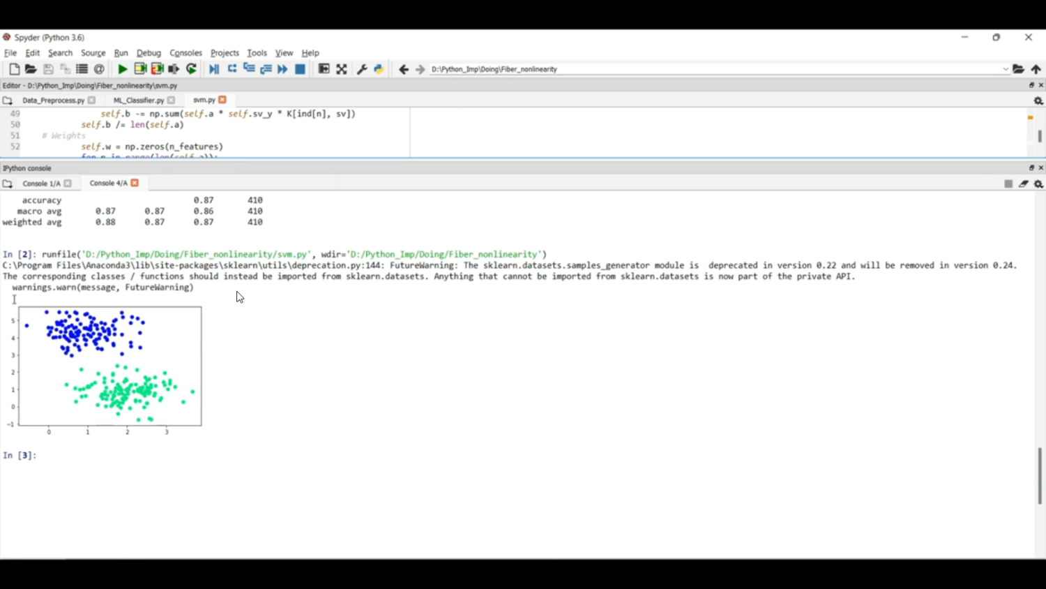 The proposed system implements a Python-based framework to train models for analyzing and predicting fiber nonlinearity effects in optical communication systems. Input data—such as optical signal parameters, dispersion coefficients, power levels, and modulation formats—is preprocessed to remove noise and normalize values. Machine learning models, including neural networks or CNN-based architectures, are trained to predict the impact of nonlinear effects on signal quality, such as phase shifts, amplitude distortions, and bit error rates. The system provides visualization of nonlinear interactions, performance metrics, and optimization suggestions for transmission parameters. Python libraries such as NumPy and SciPy are used for numerical simulations, Matplotlib for visualization, and TensorFlow/Keras for training predictive models. By integrating data-driven modeling with simulation and visualization, this project provides an accessible, scalable, and accurate tool for studying fiber nonlinearities and optimizing optical communication systems.